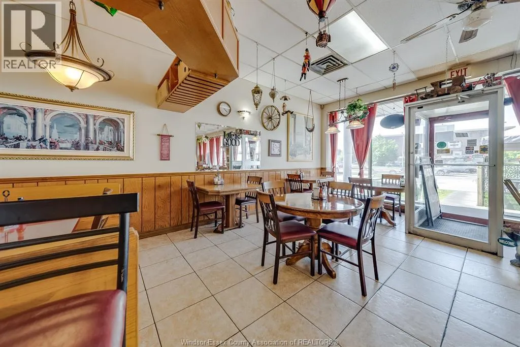 Profitable Turnkey Restaurant Opportunity! Seize the chance to own a well-established, positive cash-flowing restaurant that has proudly served the Windsor/Essex County community for almost 4 decades! Located in a high-traffic plaza with excellent visibility, ample free parking, and a beautiful extended patio, this business is perfectly positioned for continued success. An existing lease is in place for another 4 years at just $3,125/month plus HST with renewal option which includes water usageâoffering stability and affordability for the next owner. With a loyal dine-in customer base, a strong takeout and online delivery operation, updated menus, a modern POS system, solid financials, and room to expand or modernize, this is a rare chance to step into ownership of a trusted local staple with a proven legacy of success! (id:27476)