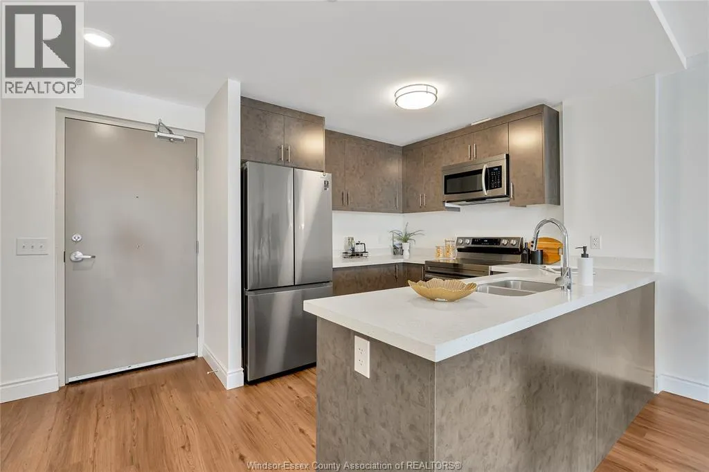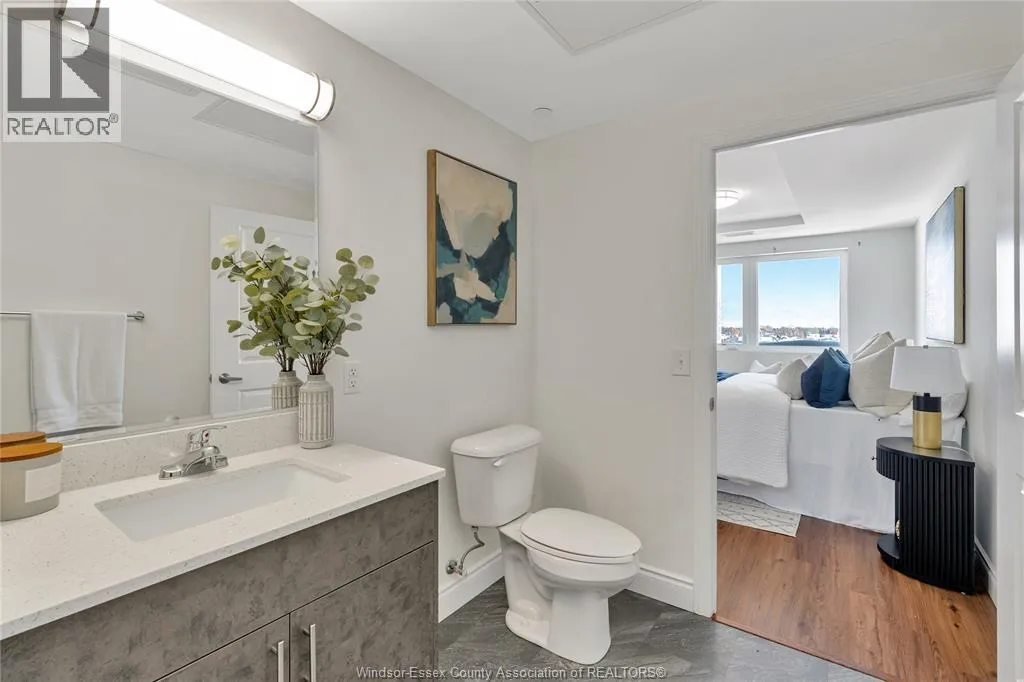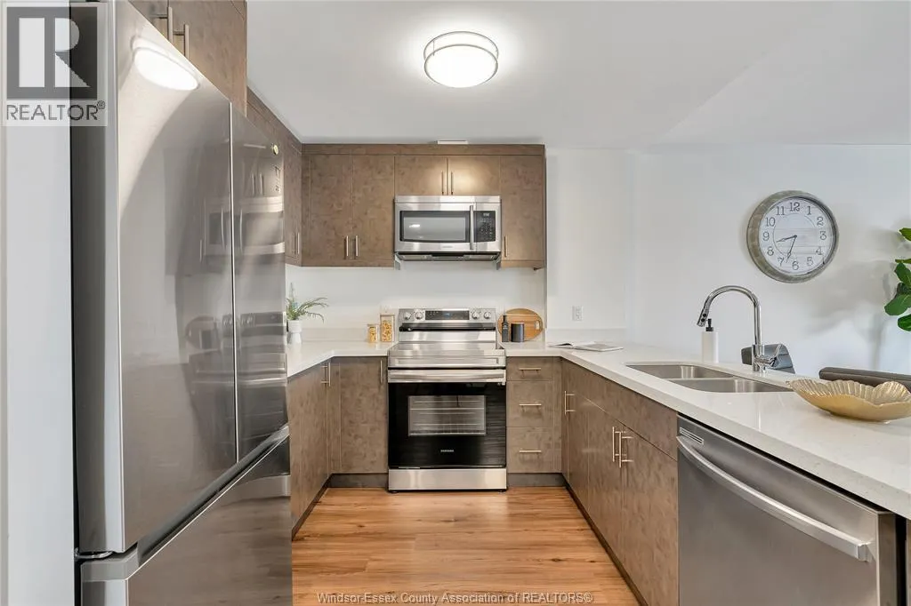 Welcome to Eastside Horizons! Nestled in Windsor's sought-after Eastside community, this top-floor 1-bedroom, 1.5-bath condo combines modern comfort with an unbeatable location. Enjoy uninterrupted views of East Riverside Park and Blue Heron Lake from your private space - a perfect retreat surrounded by nature. Inside, you'll find stylish contemporary finishes, in-suite laundry, stainless steel appliances.Residents also have access to exceptional building amenities, including a fitness centre, party room, and multi-purpose studio. Conveniently located near scenic trails, parks, and shopping, this property offers exceptional value and a vibrant lifestyle in one of Windsor's most desirable and fast-growing neighbourhoods. (id:27476)