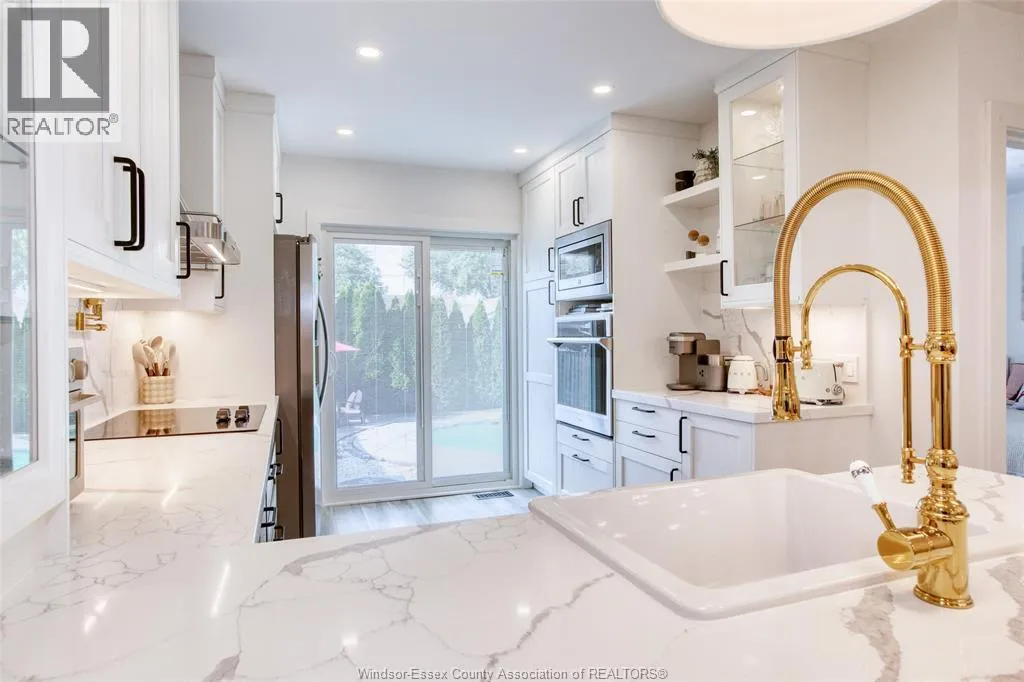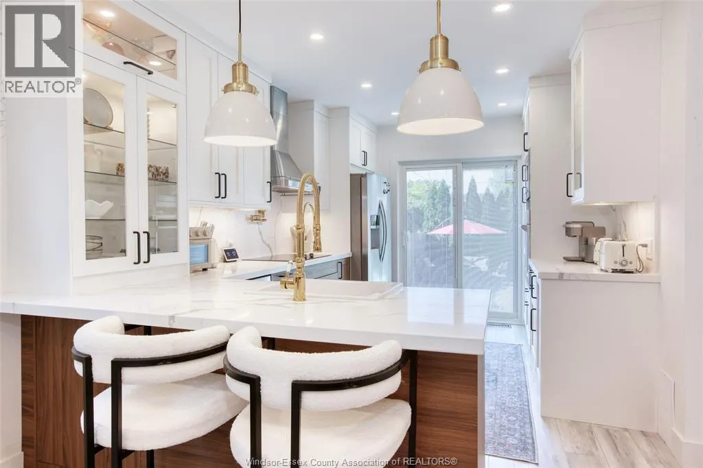 Absolutely stunning showpiece located in highly sought after area of South Windsor. This beautifully renovated brick home has so much to offer, ideal for a growing family. Completely remodelled Open concept main flr living w/luxury vinyl flrs; fam rm/wcozy nat fplc, spacious din rm; Gourmet chefâs kitchen straight out of a magazine w/cabinets to the ceiling, b-in appliances, farmhouse apron sink, pot-filler, eat-in island, coffee bar & quartz counters extended up the backsplash; 2 Main flr bedrooms & gorgeous updated custom mn flr bath w/heated flrs, curbless shower done w/Schluter system & stylish mosaic tile; upper level offers 2 addt'l bdrms & spacious bath, plus a partially fin bsmt. Wonderful private fenced yard w/in-gr pool & spacious patio, perfect for entertaining. No detail has been spared in this 4 bdrm, 2 full bath home w/adorable breezeway & attached garage. Just mins to all amenities incl great schools, shopping, churches/mosque, 401, HWY 3, EC Row & US border. (id:27476)