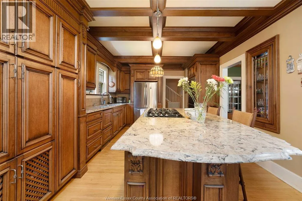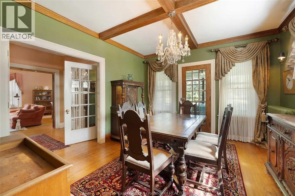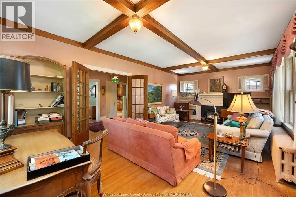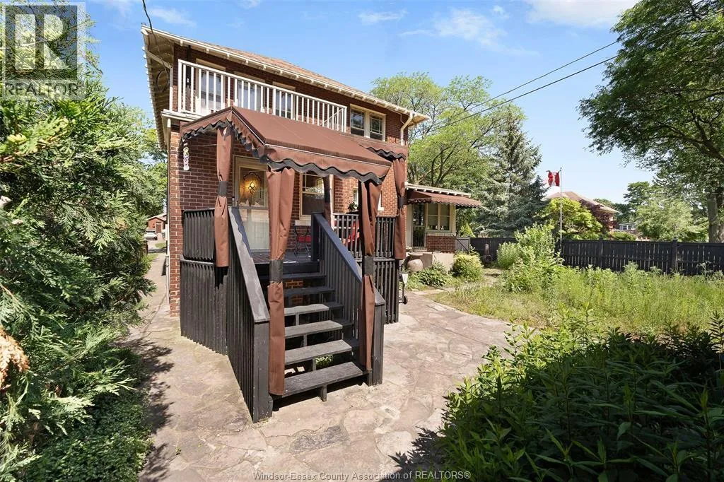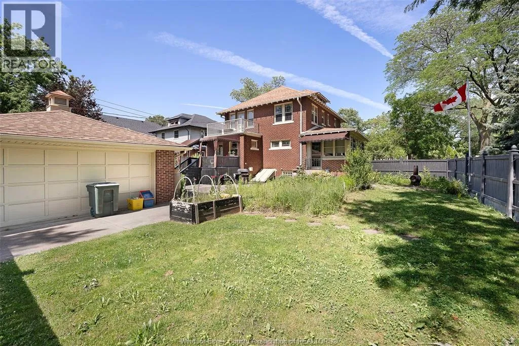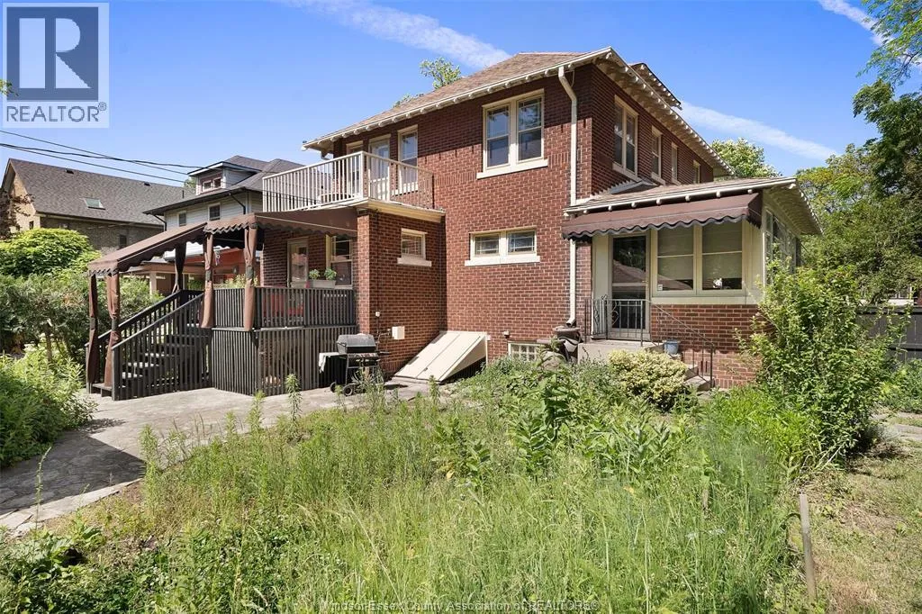 One block north of the historic Willistead Park & Manor in the OLDE WALKERVILLE HERITAGE AREA. This 1920's Edwardian 4 Square style 3 bedrm 2.5 sty, is well positioned on a large comer lot in the heart of Historic Olde Walkerville, backs onto butterfly alley, is one block South of Willistead Park & overlooks the Low Martin home. The unique period 3 season sunroom leads to a foyer that opens into a spacious entrance hallway. Coffered ceilings are featured in the spacious living room w/ sitting area & gas f/p, in the formal dining room, and in the beautiful custom kit w/island, eating bar, quartz counters, & many B/1 features ( 2 dishwashers, 2 ovens, warming drawer, gas countertop stove, pantry). Special features include period french doors w/ bevel glass; very Irg master bedrm w/ his & her closets & lpc ensuite; 2nd flr balcony; walk up to 3rd flr attic ; 200 amp elec, copper eaves troughs & downspouts; cosy rear covered deck, overlooking private fenced rear yard. The 2.5 car garage has a automatic double door entrance from the alley and a double door opening to the backyard. (id:27476)