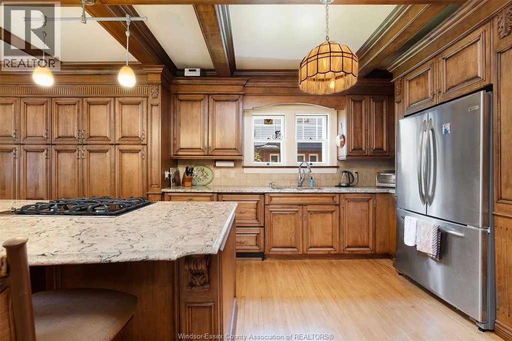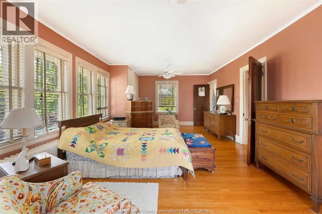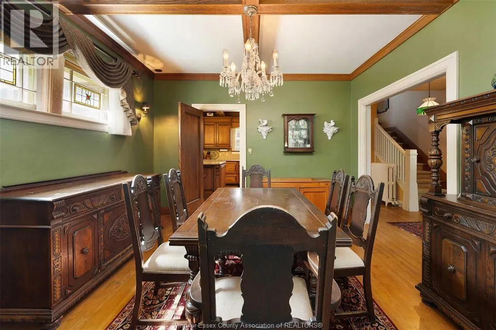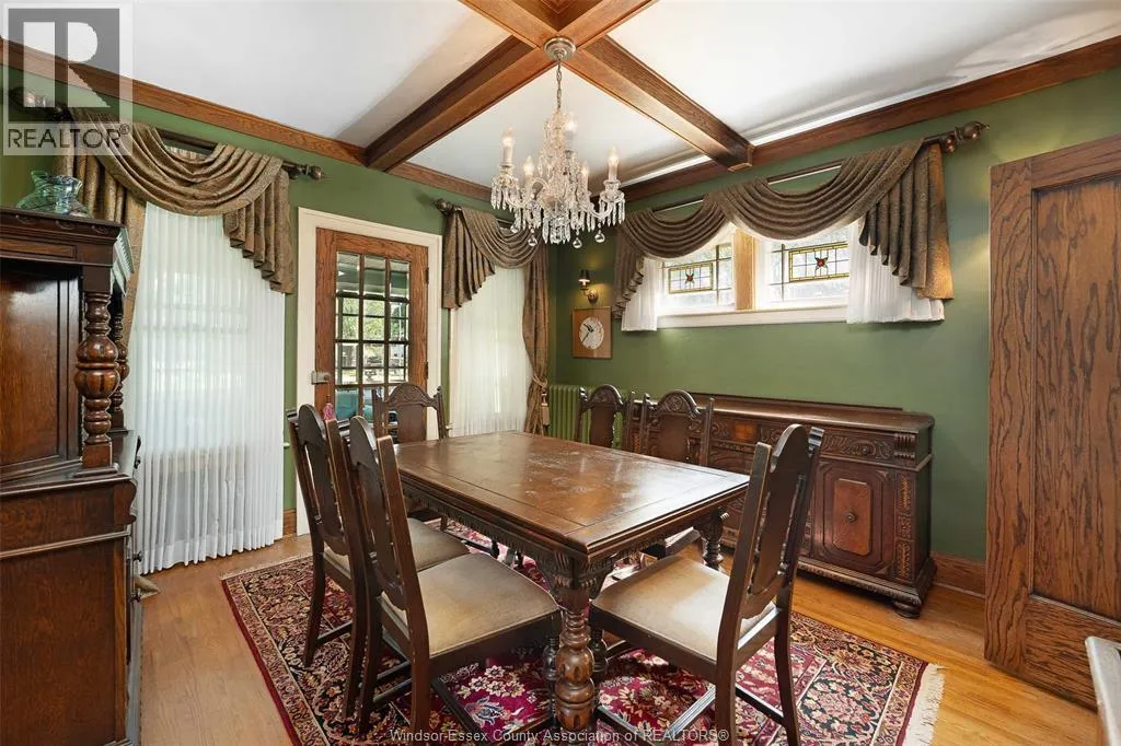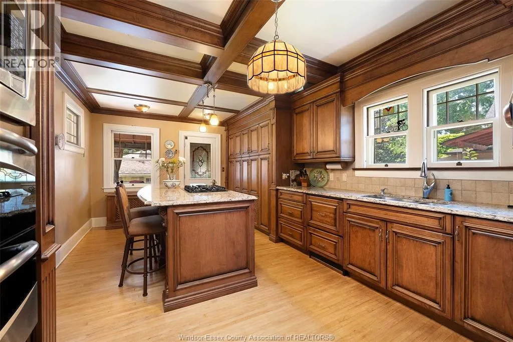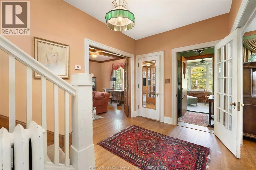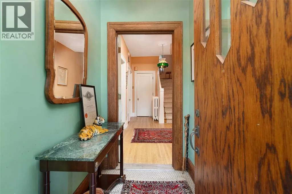 One block north of the historic Willistead Park & Manor in the OLDE WALKERVILLE HERITAGE AREA. This 1920's Edwardian 4 Square style 3 bedrm 2.5 sty, is well positioned on a large comer lot in the heart of Historic Olde Walkerville, backs onto butterfly alley, is one block South of Willistead Park & overlooks the Low Martin home. The unique period 3 season sunroom leads to a foyer that opens into a spacious entrance hallway. Coffered ceilings are featured in the spacious living room w/ sitting area & gas f/p, in the formal dining room, and in the beautiful custom kit w/island, eating bar, quartz counters, & many B/1 features ( 2 dishwashers, 2 ovens, warming drawer, gas countertop stove, pantry). Special features include period french doors w/ bevel glass; very Irg master bedrm w/ his & her closets & lpc ensuite; 2nd flr balcony; walk up to 3rd flr attic ; 200 amp elec, copper eaves troughs & downspouts; cosy rear covered deck, overlooking private fenced rear yard. The 2.5 car garage has a automatic double door entrance from the alley and a double door opening to the backyard. (id:27476)