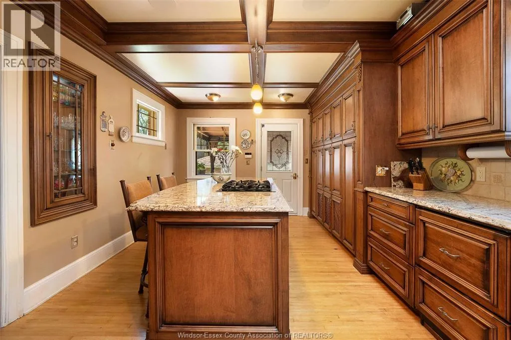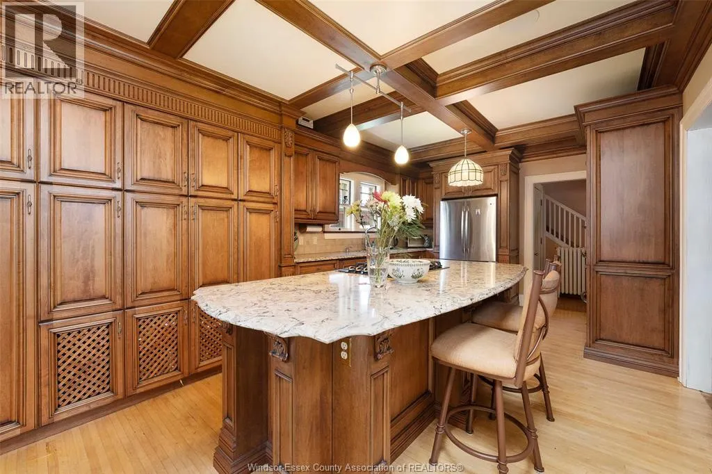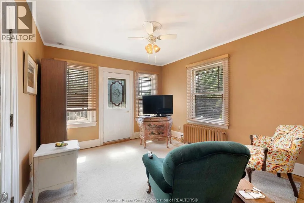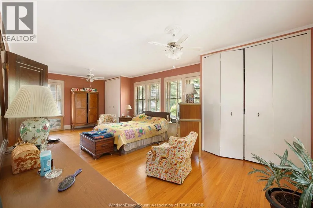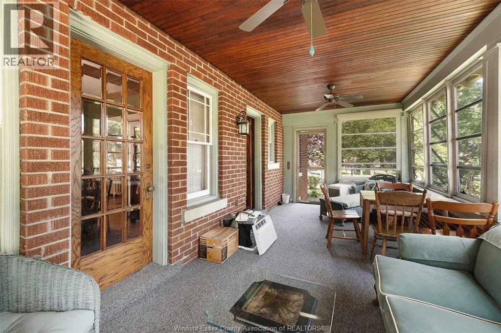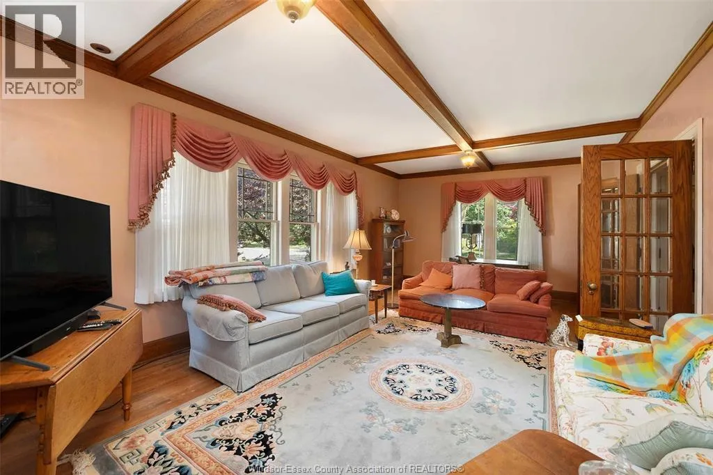 One block north of the historic Willistead Park & Manor in the OLDE WALKERVILLE HERITAGE AREA. This 1920's Edwardian 4 Square style 3 bedrm 2.5 sty, is well positioned on a large comer lot in the heart of Historic Olde Walkerville, backs onto butterfly alley, is one block South of Willistead Park & overlooks the Low Martin home. The unique period 3 season sunroom leads to a foyer that opens into a spacious entrance hallway. Coffered ceilings are featured in the spacious living room w/ sitting area & gas f/p, in the formal dining room, and in the beautiful custom kit w/island, eating bar, quartz counters, & many B/1 features ( 2 dishwashers, 2 ovens, warming drawer, gas countertop stove, pantry). Special features include period french doors w/ bevel glass; very Irg master bedrm w/ his & her closets & lpc ensuite; 2nd flr balcony; walk up to 3rd flr attic ; 200 amp elec, copper eaves troughs & downspouts; cosy rear covered deck, overlooking private fenced rear yard. The 2.5 car garage has a automatic double door entrance from the alley and a double door opening to the backyard. (id:27476)
