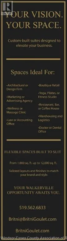 STEP INTO POSSIBILITY AT 1519 WYANDOTTE - WHERE YOUR NEXT CHAPTER IN WALKERVILLE BEGINS. FROM INTIMATE 1,000 SF OPPORTUNITIES, EVERY SQUARE FOOT IS A BLANK CANVAS WAITING FOR YOUR TOUCH. IMAGINE YOUR DREAM CONCEPT UNFOLDING HERE, A SPACE DESIGNED ENTIRELY AROUND YOUR VISION AND PURPOSE. WITH FRESH EXTERIOR UPDATES COMING IN 2026, THIS PROPERTY PROMISES NOT JUST POTENTIAL, BUT TRANSFORMATION. LET'S TALK IDEAS, DESIGN INSPIRATION, AND HOW TO MAKE YOUR VISION REALITY. THE NEW OWNERâALREADY AN ESTABLISHED WALKERVILLE PROPERTY OWNERâIS POURING RESOURCES INTO TRANSFORMING BOTH THE INSIDE AND OUTSIDE OF THE BUILDING, CREATING A BOLD DETROIT-WALKERVILLE VIBE. CONTACT LS TO DISCUSS OPPORTUNITIES! (id:27476)