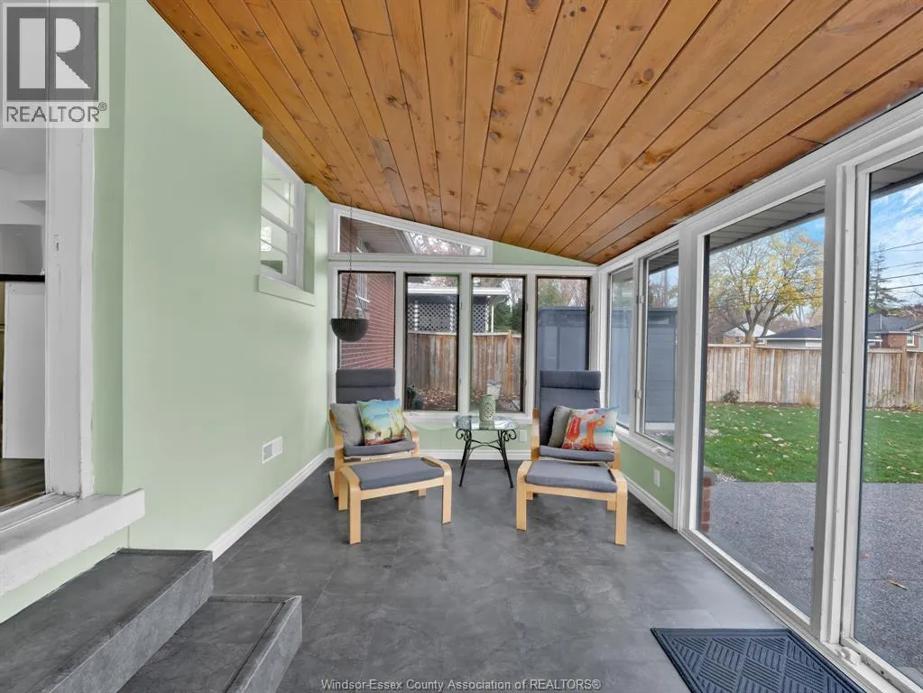 Welcome to one of South Windsorâs most sought-after streets! Nestled in a quiet, family-friendly neighbourhood surrounded by top-rated schools, parks, churches, and mosques, this solid brick ranch offers the perfect blend of comfort, convenience, and charm. Just minutes from the E.C. Row Expressway and all major amenities, this home sits on a spacious private lot with mature trees and beautifully landscaped grounds and a massive storage shed. Step inside to find a bright and inviting layout featuring 4 bedrooms and 2 bathrooms, a large eat-in kitchen filled with natural light, and a cozy living room with a gas fireplace and stunning bay window. Enjoy your morning coffee on the charming front porch, or relax year-round in the gorgeous sunroom overlooking the backyard. The fully finished basement provides additional living space, perfect for a family room, home office, or recreation area. An attached tandem garage with inside entry adds to the homeâs practicality and appeal. Solidly built and meticulously maintained, this property is ideal for families looking to settle in one of Windsorâs best communities. Donât miss your chanceâcall today for a private tour! (id:27476)
