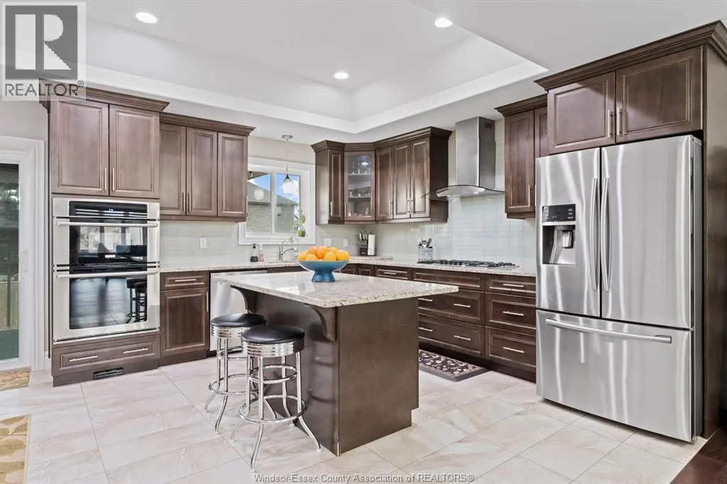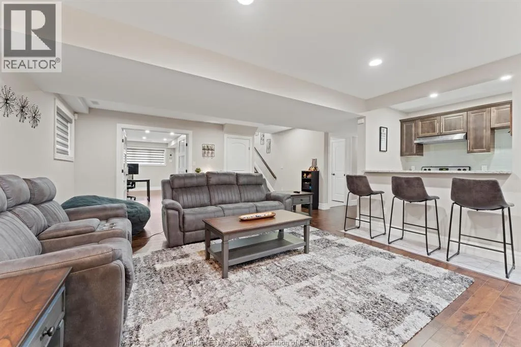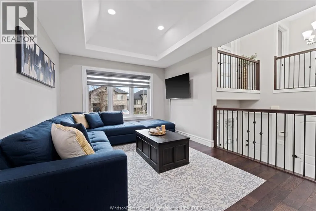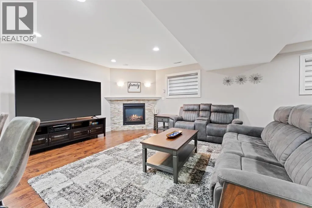 Stunning family home, boasts a large entrance with an open concept living space and features a well appointed kitchen with upgraded stainless appliances and granite tops, offering quality flooring throughout with custom trayed ceilings . Main floor offers two bedrooms plus an attractive super sized bonus room with a gorgeous ensuite, walk-in closet and double frosted doors that open to a balcony overlooking the main floor. Enjoy the fully finished basement having a large area with wet bar open to rec room with attractive stone fireplace for relaxing nights . Complete with large 3pc bath ,2 additional bedrooms ,great laundry area and grade entrance for your convenience. Enjoy the private fenced back yard with covered deck and patio areas. Large garage complete with electric car hook up. Fantastic location in South Windsor. (id:27476)