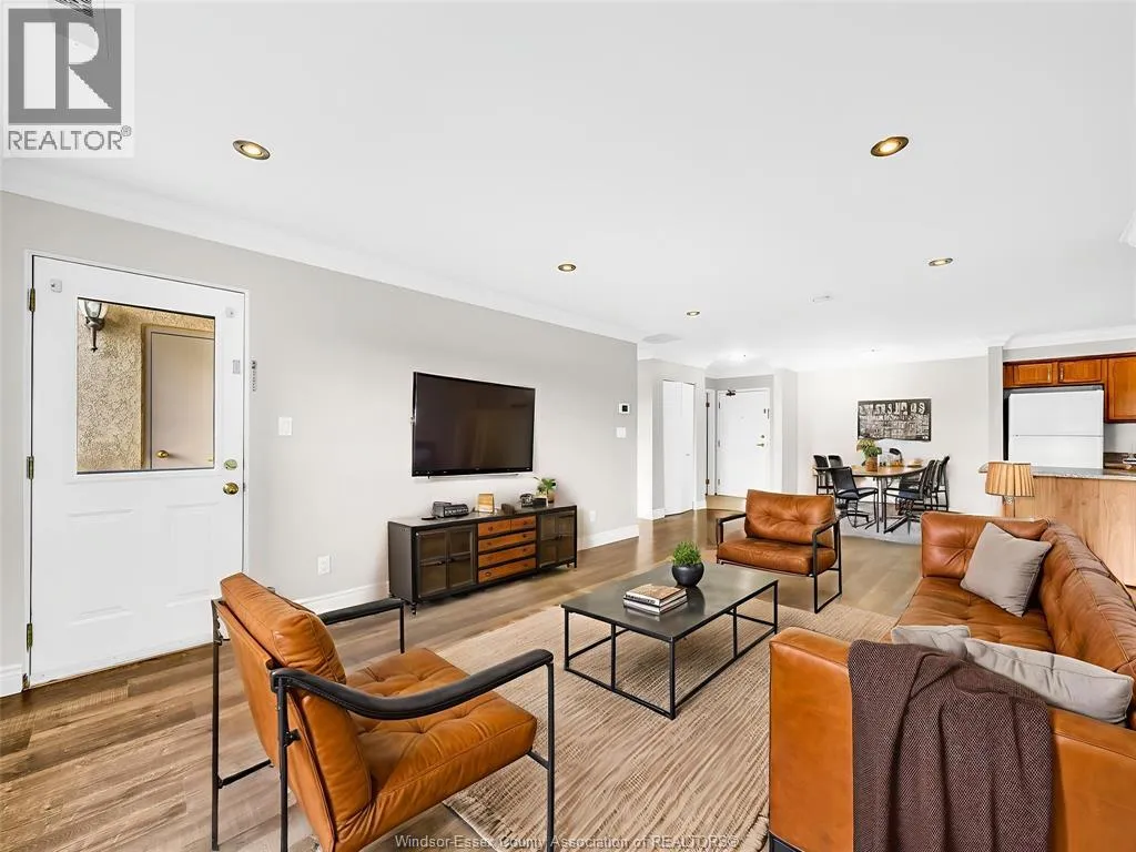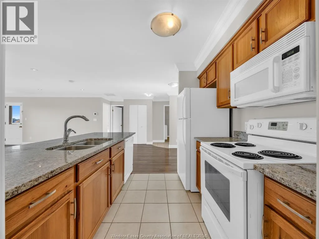 Welcome to Glengarda Gardenview. Prime Riverside location! This 4th floor unit features a balcony, 2 bedrooms and is move in ready, freshly painted , cove moldings, pot lights, granite counter tops, laminate flooring, all new trim, large master bedroom, open concept living/kitchen area. in-suite laundry, Great for down sizers looking for long term occupancy. Call today for your viewing. (id:27476)