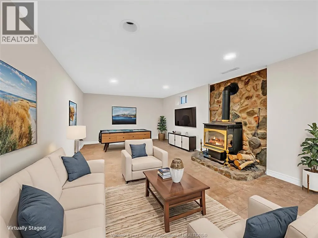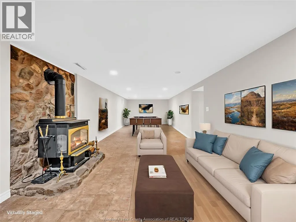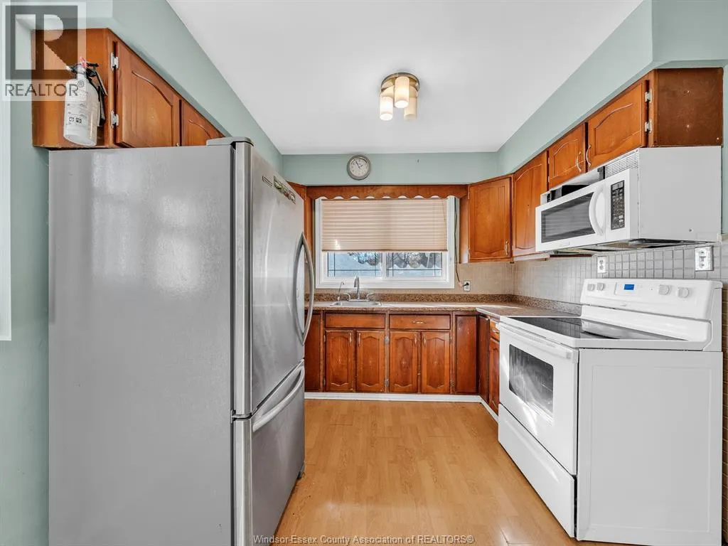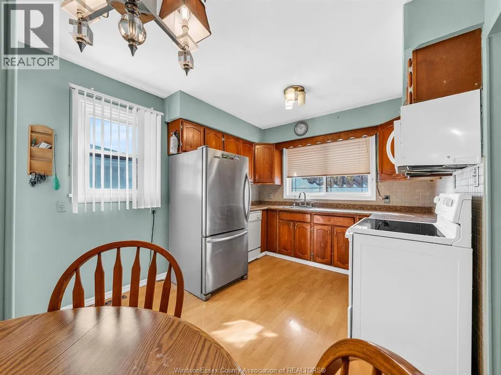 Charming Windsor ranch in a convenient central location close to bus routes, shopping, groceries, and all amenities. The main floor features 3 bedrooms, a full bath, laminate flooring throughout, a bright living room with a large picture window, dining area, and a functional kitchen. A side door provides direct access to the basement, offering great potential and flexibility. The lower level offers excellent additional living space with a large second family room featuring a gas fireplace (as-is) and stone accent wall, laundry area, and a spacious storage/workshop room ideal for tools or hobbies. Outside youâll find a long concrete driveway leading to a detached single-car garage. The concrete continues to wrap around behind the home, while still providing a large grassed backyard. A great opportunity in a highly accessible Windsor location. (id:27476)
