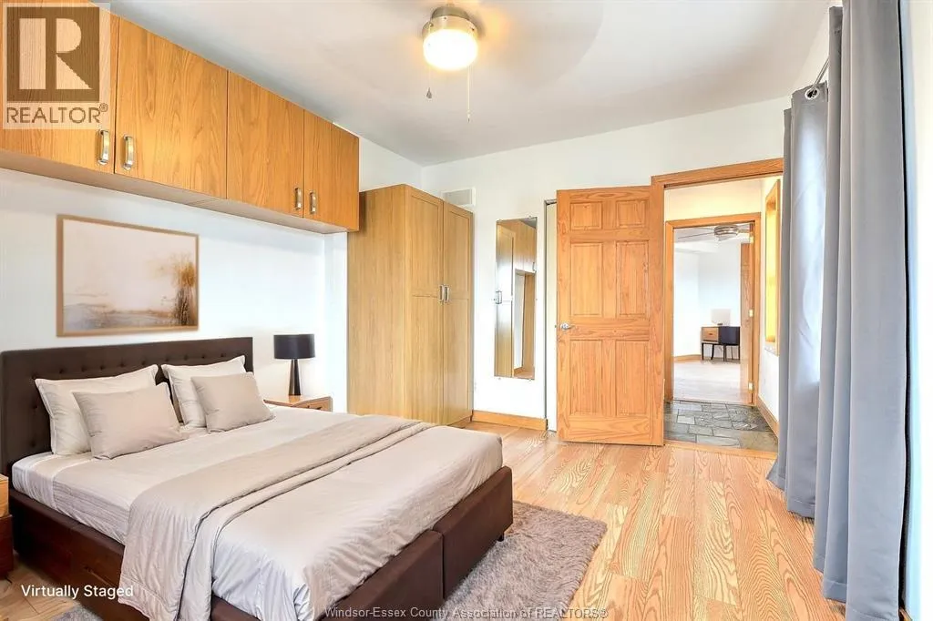 Step into this charming and historically significant 2-storey home, originally built by Hiram Walker. Blending old-world character with modern updates, this turn-of-the-century gem still features exposed brick, a classic covered front porch, hardwood floors, and a rare double staircase. The main floor offers a spacious open-concept living and dining area, a bright office or den that could also serve as a third bedroom, a renovated kitchen with new appliances, and a convenient powder room. Upstairs, youâll find two bright bedrooms, a full bathroom with a beautiful stand-up shower, and laundry. Zoned for commercial and/or residential use, this property offers great potential for live/work flexibility. The backyard is fully fenced and landscaped with a covered deck, two parking spaces, and a wired storage shed ready for an EV charging station. (id:27476)