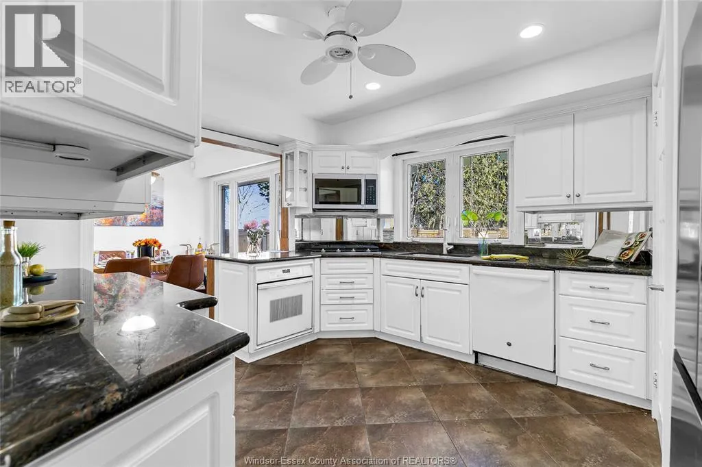 Don't miss this beautiful oversized ranch in South Windsor. Corner lot, 2 kitchens. Rental income potential from lower level. This home features 5 bedrooms, 2 bathrooms, large living room w/fireplace, dining area and large kitchen. The basement is fully finished in-law suite with separate entrance, a family room with gas fireplace ,2nd bathroom, 2 bedrooms, and Laundry. Fantastic backyard complete with a heated inground pool and pool house. The pool has not been used for some time. Seller represents no warranties on the pool. No side neighbors (North Side). Walking distance to Northwood Public and Holy Names High School. Easy access to bus route, St. Clair college, University, and US Border. Located within walking distance to shopping including Walmart. Call the listing agent for showings. (id:27476)