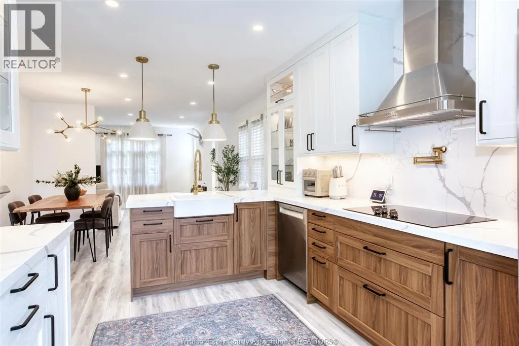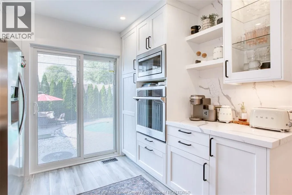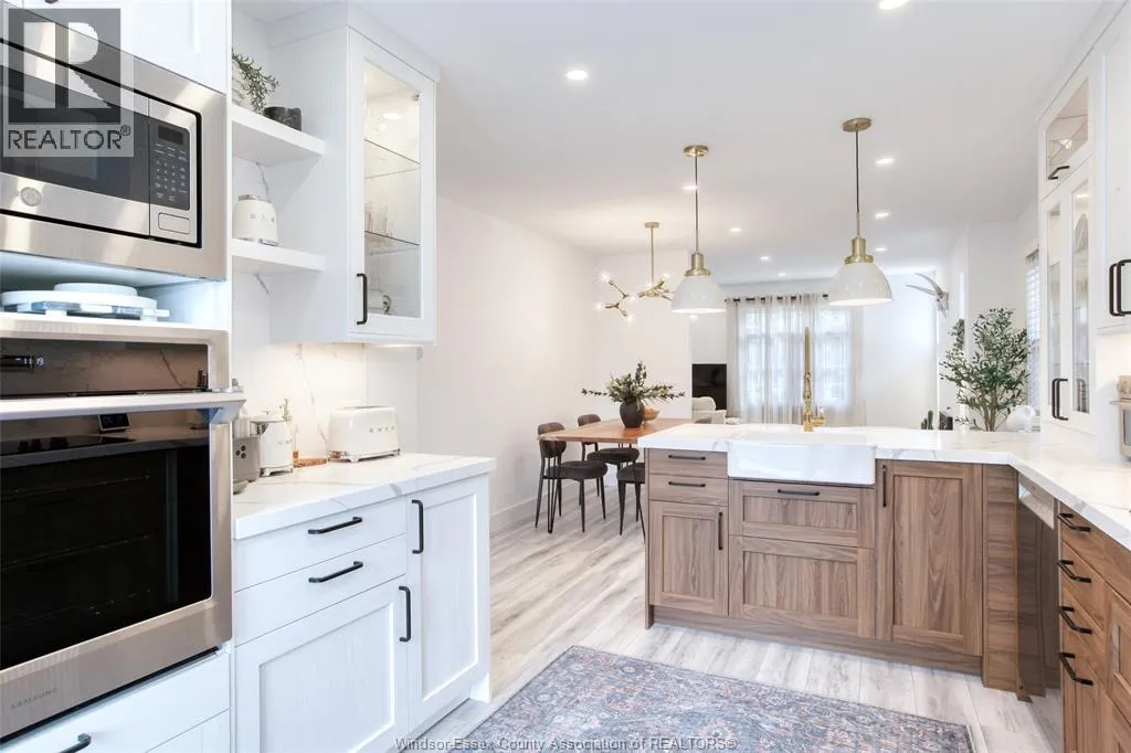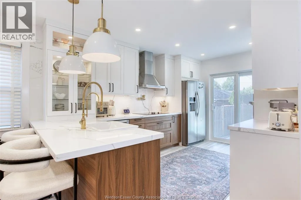 Absolutely stunning showpiece located in highly sought after area of South Windsor. This beautifully renovated brick home has so much to offer, ideal for a growing family. Completely remodelled Open concept main flr living w/luxury vinyl flrs; fam rm/wcozy nat fplc, spacious din rm; Gourmet chefâs kitchen straight out of a magazine w/cabinets to the ceiling, b-in appliances, farmhouse apron sink, pot-filler, eat-in island, coffee bar & quartz counters extended up the backsplash; 2 Main flr bedrooms & gorgeous updated custom mn flr bath w/heated flrs, curbless shower done w/Schluter system & stylish mosaic tile; upper level offers 2 addt'l bdrms & spacious bath, plus a partially fin bsmt. Wonderful private fenced yard w/in-gr pool & spacious patio, perfect for entertaining. No detail has been spared in this 4 bdrm, 2 full bath home w/adorable breezeway & attached garage. Just mins to all amenities incl great schools, shopping, churches/mosque, 401, HWY 3, EC Row & US border. (id:27476)