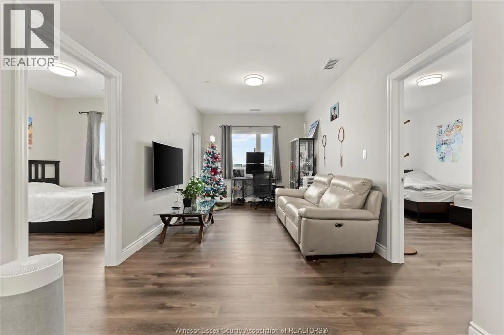 Discover modern living in this beautifully built LaSalle condo. Unit 312 on the 3rd floor offers just under 1,000 sq. ft. with 2 bedrooms and 2 full baths. The foyer opens to a sleek 3-piece bath and convenient in-suite laundry. The stylish kitchen features ample cabinetry and a two-seater island, flowing into a bright, spacious living area with access to a private patio. The primary bedroom includes a walk-in closet and a luxurious 5-piece ensuite, while the second bedroom is perfect for guests or a home office. The building offers a welcoming meeting area and a well-equipped gym. Located minutes from the 401, St. Clair College, and Windsor, this condo delivers comfort and convenience. HVAC (heat pump) rented for $125/month. Includes 2 surface parking spot #39 & #81. (id:27476)