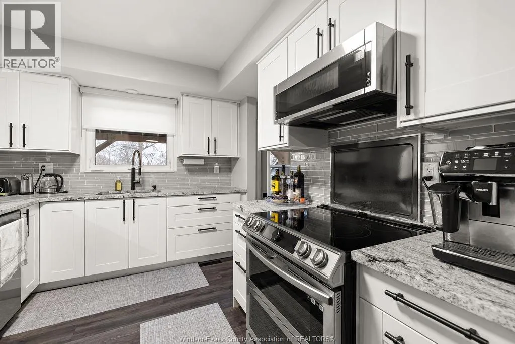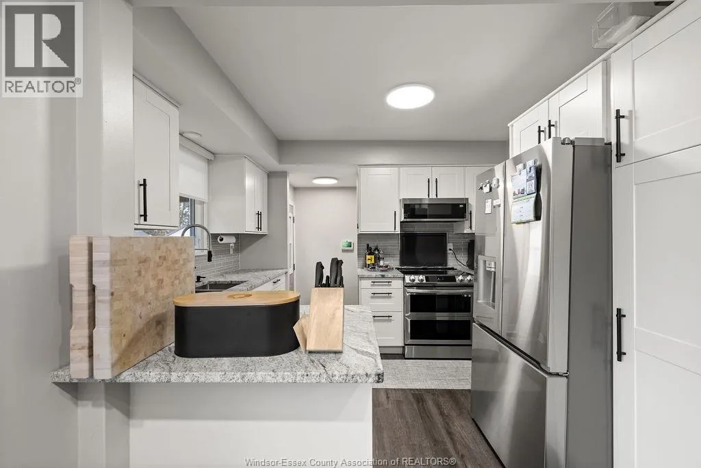 PRIME SOUTH WINDSOR LOCATION BACKING ON TO ROSELAND GOLF COURSE This refreshed 3+1 bed, 2 full bath home sits on a deep lot with unobstructed views of the 11th hole. The main level offers bright, open-concept living with modern LED pot lighting and a granite kitchen complete with stainless steel appliances and a stylish backsplash. The lower level extends your living space with a cozy family room featuring a gas fireplace and full bathroom. Step outside to a beautifully designed backyard with a brand-new sundeck, vinyl privacy fencing, and a charming gazebo. The carport includes convenient pass-through access, providing an easy option for a future garage. All of this just steps from parks and schools, and minutes to shopping, restaurants, the 401, and the U.S. border. A Roseland lifestyle you wonât want to miss. *See attached for upgrades* (id:27476)