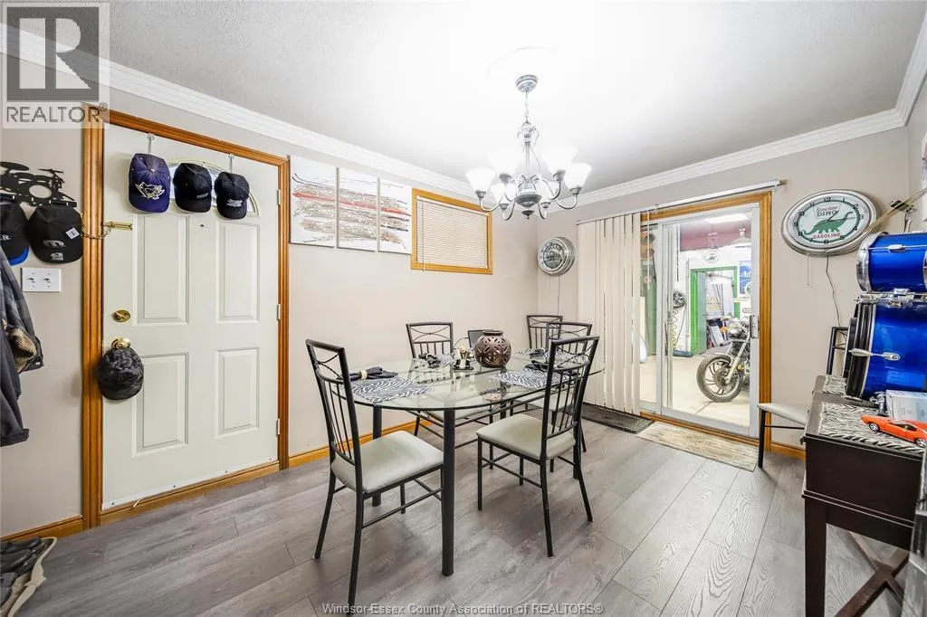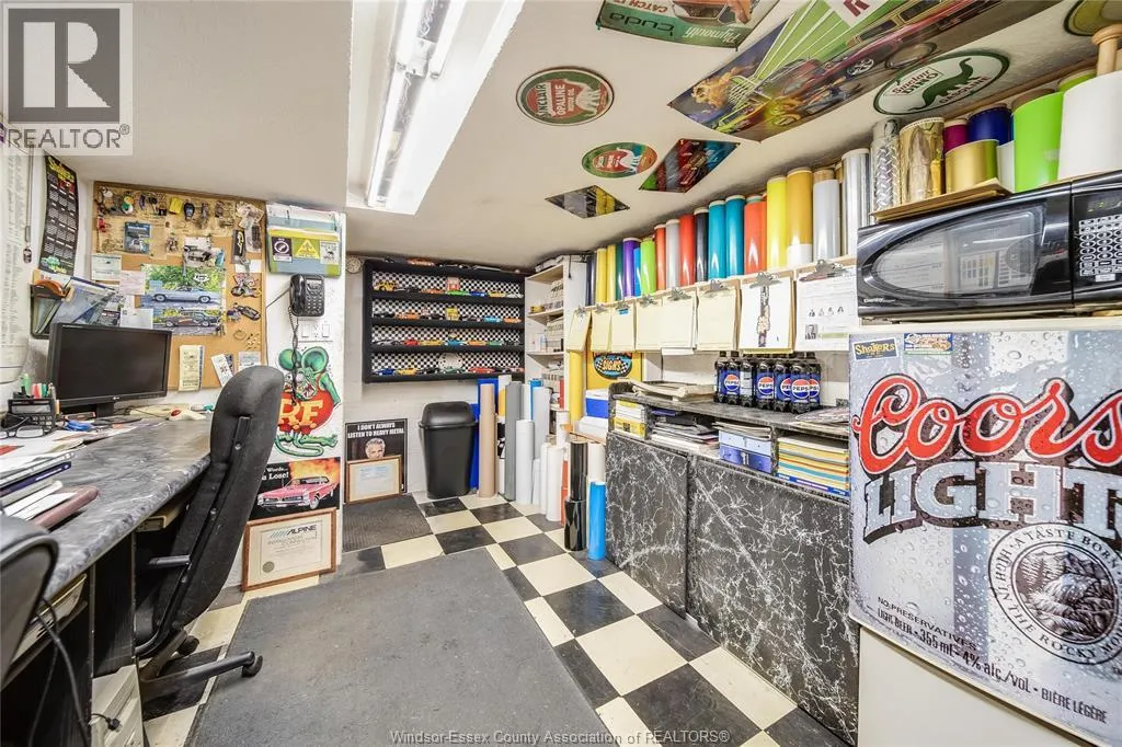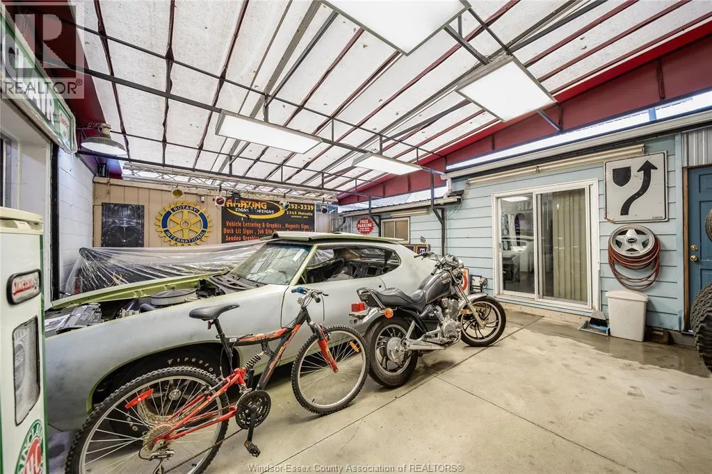 Welcome to 1354 St. Luke, Windsorâa rare 2-for-1 opportunity offering a well-kept home PLUS an impressive heated cinder block shop with serious work-from-home and hobby potential. The shop is approx. 24â x 28â and packed with function: overhead bay door and drive-in access for easy loading/unloading, high ceilings for larger equipment and projects, an I-beam trolley hoist, and a loft area perfect for office/storage. Power users will love the highly desirable 3-Phase / 600 AMP serviceâideal for tools, equipment, or business operations. Outside, enjoy a covered courtyard with a 4â concrete floor and plumbing roughed-in for radiant floor heat, creating a sheltered space to work or entertain. Inside the home, the layout is practical and comfortable: dining room flows to a spacious living room, primary bedroom on the main floor, and the kitchen, laundry, and full bathroom all on the main level. Upstairs offers a bedroom plus office space that could potentially serve as an additional bedroom, studio, or flex room. Updates include a newer steel roof and clean laminate flooring, making it easy to move in and add your own style. Whether you need a workshop, extra storage, or a dedicated workspace, this property delivers a hard-to-find mix of livability and capability. Seller will review offers as they come; all offers to include Schedule B. The shop setup is perfect for trades, makers, or anyone wanting a true home-based business: bring vehicles inside, stage materials, and keep work separate from the house. The high ceilings and loft create flexible zones for an office, inventory, or storage, and the heated block construction helps keep the space usable year-round. The courtyardâs concrete pad and future radiant-heat option add versatility for projects, outdoor tools, or a covered hangout. This is the kind of property that supports big ideasâset up a studio or production space, or simply enjoy extra room to build and create. (id:27476)