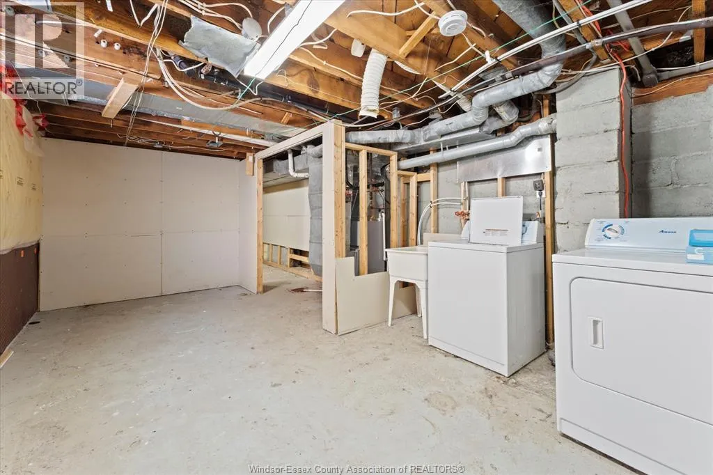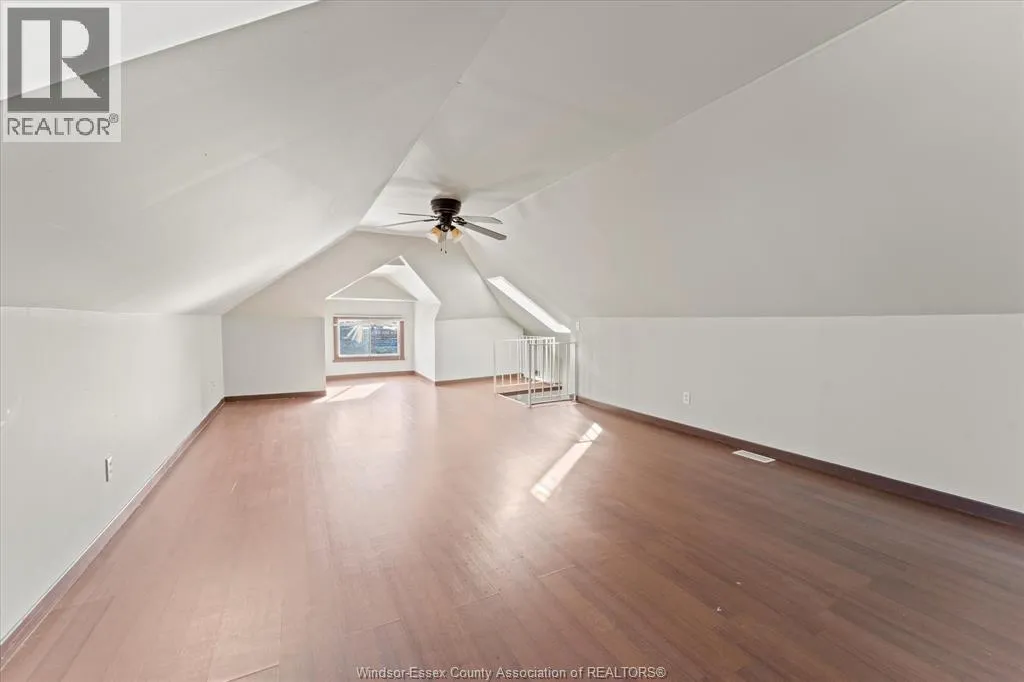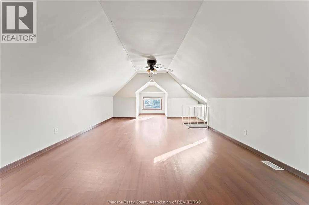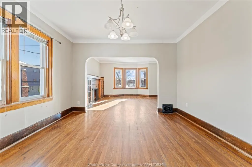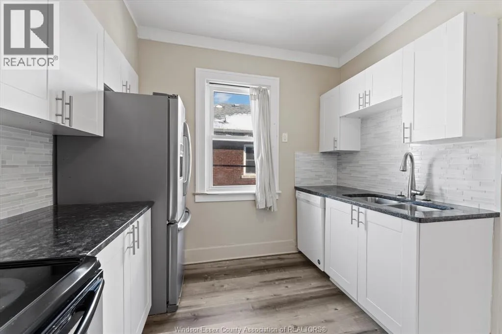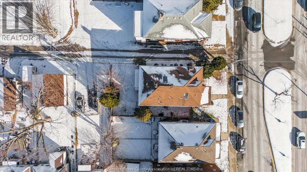 Full Brick 2 1/2 storey up and down duplex with nicely finished hardwood floors and trim throughout. Each unit features fully renovated kitchens, bathrooms, good-sized bedrooms, full basements with tall ceiling heights equipped with waterproofing, owned HWT's, washer and dryer sets. Top unit has a full balcony and massive loft space on the 3rd floor. Completely separate hydro, gas meters, furnaces, AC units. Brand new AC for upper unit. Newer vinyl windows throughout. 2 Parking spaces off the alley, shared side patio. Upstairs is completely vacant, perfect for a move-in mortgage helper or secure turn-key investment property. Main floor rents for $1776.87 + utilities. All appliances included. Located Central Windsor, walking distance to shopping and retail along Ouellette and Erie, minutes from Kennedy High School. (id:27476)