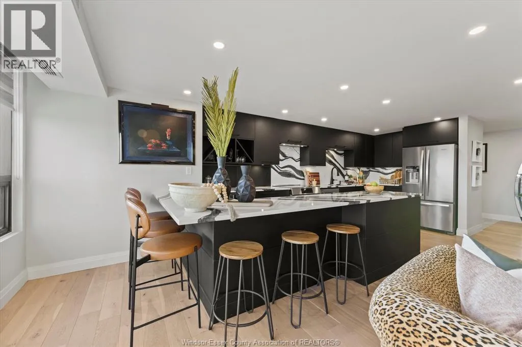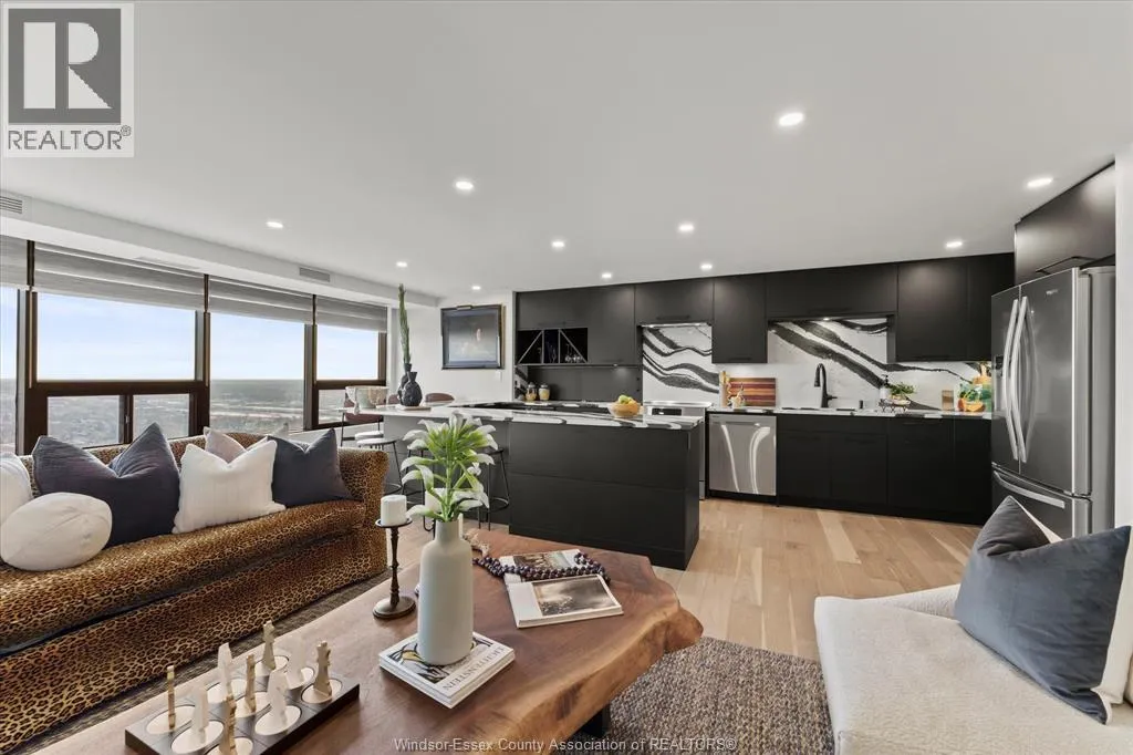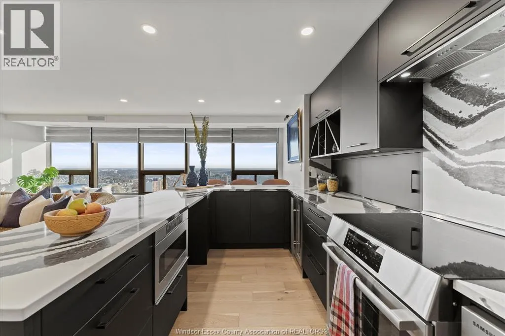 This trendy and stylish condo right in the heart of downtown Windsor, minutes from the US border and offers fabulous views from the 29th floor, stunning kitchen with centre island created by Wayne's Custom kitchen with quartz counters and top of the line appliances, updated flooring, lighting, ect....seller has spent $150,000.00 with the last couple of years with many updates which must be viewed to appreciated. This unit was 2 bedroom and can easily be converted back. This condo is a pleasure to show! (id:27476)
