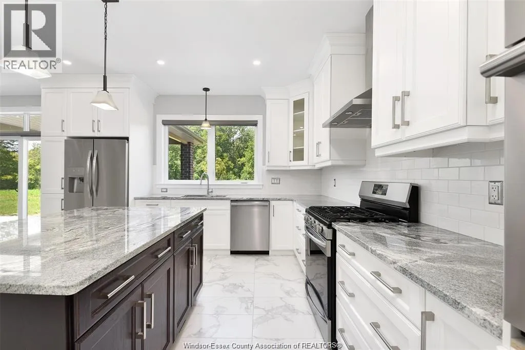Custom-built two-storey home in desirable South Windsor, offering approx. 3,216 sq. ft. of move-in ready living space. This home features 5+2 bedrooms and 4+1 bathrooms. Upper level offers 4 bedrooms, 3 full baths including 2 ensuites, plus a media/office area. The finished walk-out basement includes 2 bedrooms and a full bath, completely separated from the main level for independent living. Basement features a rough-in kitchen and an additional room ideal for a sauna or second laundry.Additional highlights include a double car garage, full brick and stone exterior, hardwood floors, and porcelain tile throughout. Bright modern kitchen with granite countertops, contrasting island, and large walk-in pantry, open to dining area. Extra-wide covered patio overlooking a private forested area with no rear neighbours.Main floor features a den, powder room, laundry, and high ceilings. Located in the Massey Secondary School district, and close to Costco, Walmart, and major shopping centres. (id:27476)