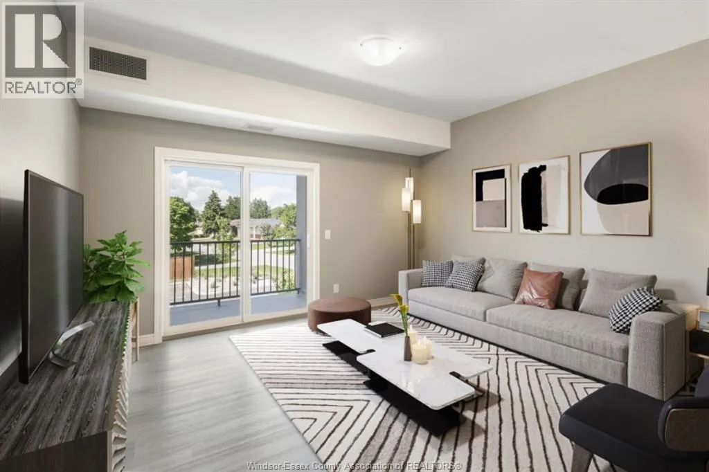Experience luxury living in this 4Y Village South Condominium. This top-floor, 898 sqft unit in a boutique 3-storey building offers 1 spacious bedrooms and 1.5 bathrooms. Featuring an open-concept kitchen with contemporary cabinetry, quartz countertops, and an upgraded premium stainless steel appliance package, this home blends modern style with functionality. Enjoy hard-surface flooring throughout, a generous primary suite with walk-in closet and ensuite, in-suite laundry, and a private balcony with metal railing. Building amenities include elevator, accessible parking, and visitor parking. Price includes water, water heater, one Parking spot #13, and exterior/grounds maintenance. Conveniently located with a bus stop at Division & Woodward, walking distance to Devonwood Conservation Area, and just minutes from the new Battery Plant, Amazon warehouse, schools, parks, shopping, restaurants, Highway 401, and airport. (id:27476)