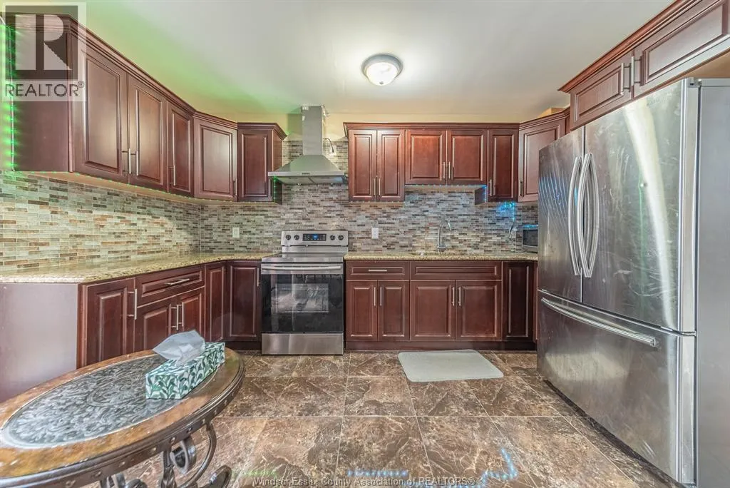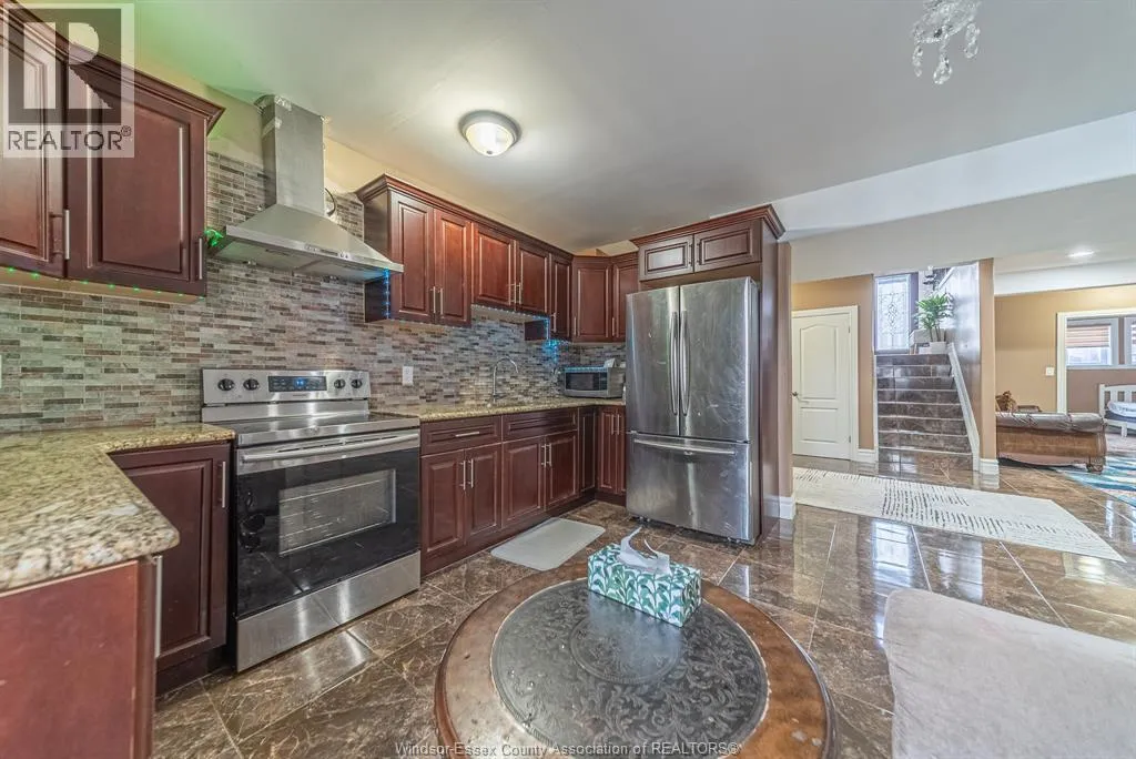 Welcome to this remarkable home in the heart of Tecumseh, located in one of Windsorâs most sought-after neighbourhoods. Offering approximately 2,200 sq ft of living space, this beautifully finished home features 5 spacious bedrooms and 3 bathrooms, including a primary ensuite with a walk-in closet. The home boasts quality finishes throughout, including elegant oak wood kitchen cabinetry and bathroom finishes. A grade entrance leads to a second kitchen and lower-level living space, making it ideal for large or multi-generational families, or a great opportunity for additional income from a basement unit. With generous room sizes, a functional layout, and pride of ownership throughout, this is a rare opportunity in a prime Tecumseh location close to all amenities. (id:27476)