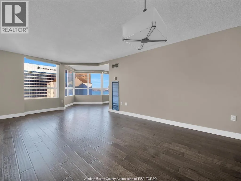 One block east of Ouellette Ave Bright, clean, and well-maintained condo for lease in the heart of downtown Windsor! Located at 75 Riverside Dr. East, this 12th-floor suite offers approx. 1,100 SQFT of stylish living with stunning views of the Detroit River Skyline. The open-concept living and dining area features oversized windows. The kitchen offers ample cabinetry, stainless appliances and granite countertops. The spacious primary bedroom includes a custom walk-in closet and 4-piece ensuite, complemented by a second bedroom, full bath, and in-suite laundry with generous storage. Building amenities include a fitness centre, updated party room, 3rd-floor terrace, and beautiful rooftop garden. Mature, quiet and secure building with a designated underground parking space and storage locker. Move in condition! Minimum 1 year lease. Rental application, credit report, proof of income and references required. Immediate possession. All utilities included! (id:27476)