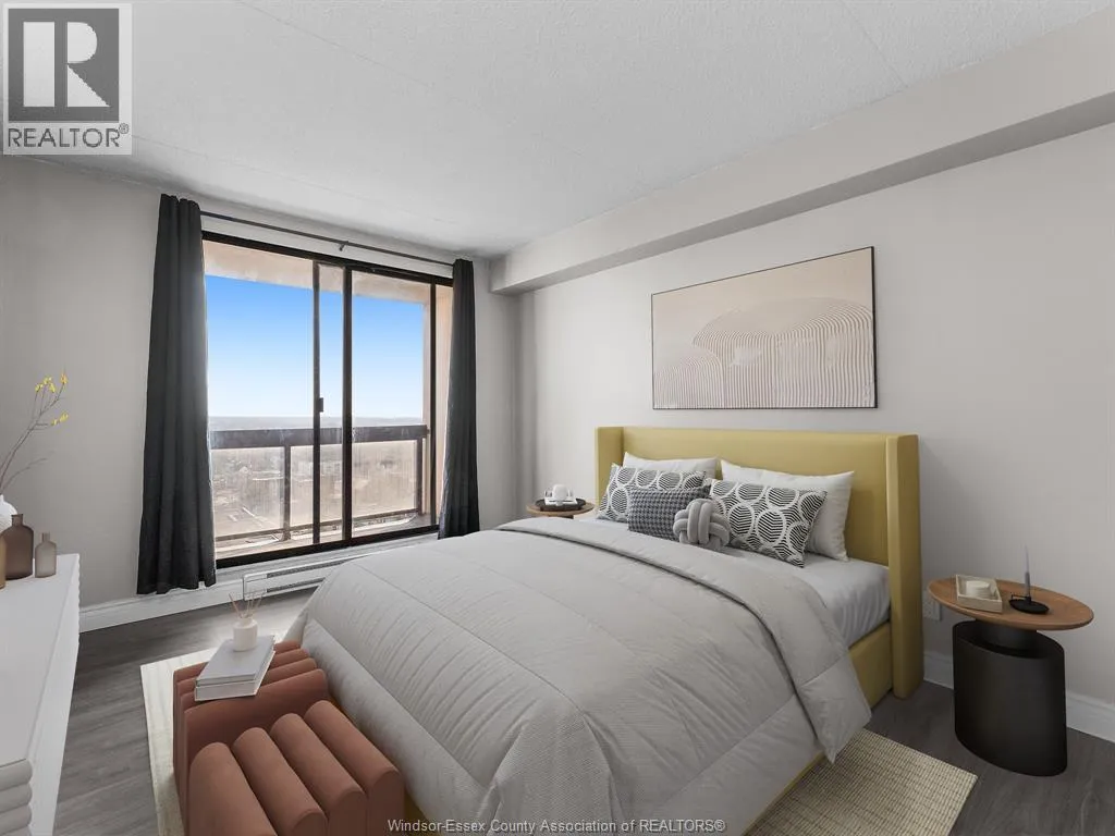 Well-maintained downtown condo offering a comfortable, convenient city location ideal for investors, down-sizers, or first-time buyers. Located on the 16th floor, this private unit features approximately 925 sq. ft. of bright, functional space. The open-concept living and dining area showcases newer laminate flooring and flows into a bright kitchen with stainless steel appliances included, plus a reverse osmosis water filtration system. Two generously sized bedrooms include a primary bedroom with a private balcony. A four-piece main bath is complemented by a convenient two-piece powder room near the 2nd bedroom. The unit also features a new air conditioning unit. This secure, well-managed building is steps from restaurants, Caesar's Windsor, the riverfront, University of Windsor and the US Border, Detroit/Ford Field. Amenities include an indoor pool, hot tub, sauna, fitness centre, party rm, storage locker, and assigned underground parking located next to the entrance for easy access. (id:27476)
