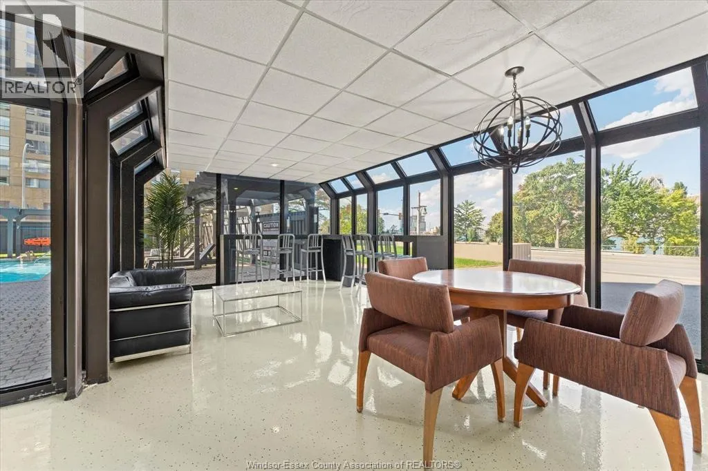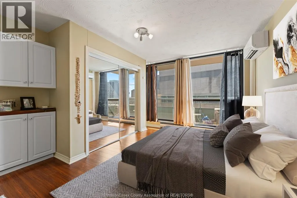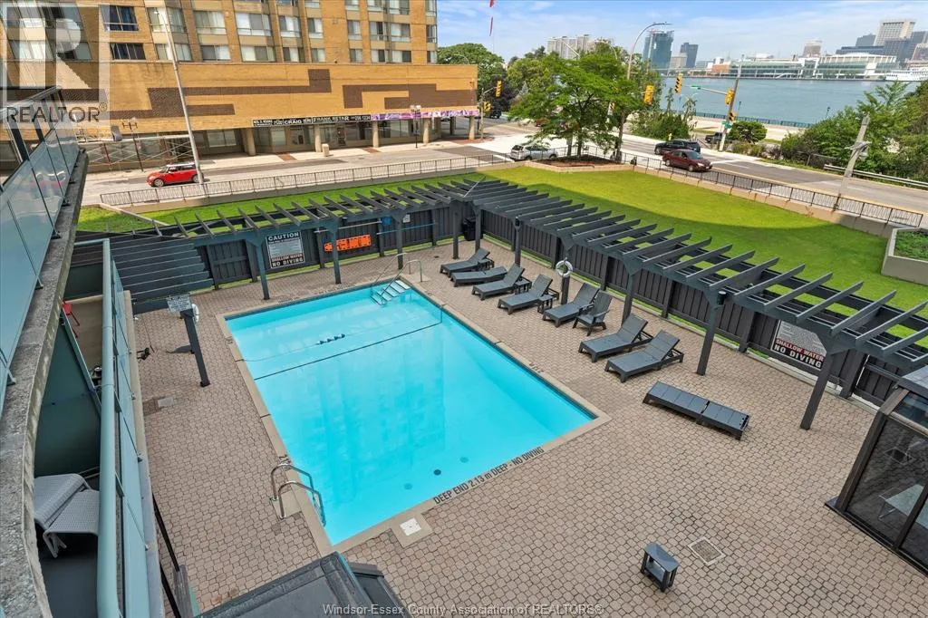 Bright, stylish, and move-in ready, this 10th-floor condo offers views of the Detroit River and Windsorâs vibrant downtown skyline. Thoughtfully updated throughout, the unit features a renovated kitchen with granite countertops, sleek cabinetry, and a dedicated dining area perfect for everyday living or hosting guests. The spacious bedroom includes custom built-in cabinetry for excellent storage, while floor-to-ceiling windows flood the space with natural light. Enjoy the rare bonus of two private balconies, one with stunning partial river views, both offering a front-row seat to the energy of downtown. This well-maintained, pet-free building provides fantastic amenities including an outdoor pool, saunas, and a history of extensive upgrades. Ideally located just steps to shops, restaurants, the waterfront trail, and Caesars Windsor, this is the ultimate low-maintenance lifestyle. With all utilities included in the monthly condo fee, this property is an excellent opportunity for first-time buyers, retirees, or investors seeking convenience, comfort, and unbeatable location in the heart of the city. (id:27476)