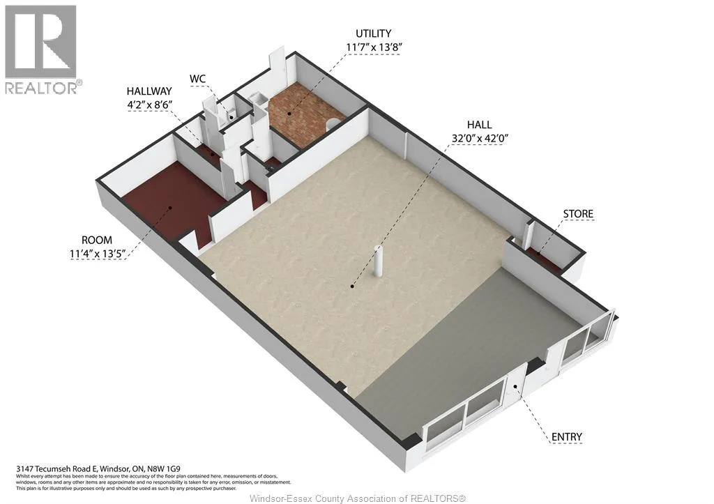 Well-located commercial space available for lease along a high traffic stretch of Tecumseh Road East in Windsor. This versatile ground-floor unit offers excellent street exposure, large front windows, and a flexible open-concept layout well suited for a wide range of commercial and professional uses. The main area features an expansive open hall with high ceilings and bright overhead lighting, providing a functional layout that can easily be adapted for retail, office, showroom, service, or studio-style uses. A private rear section includes a separate room, utility area, storage, and two washrooms, offering added functionality and convenience for staff or clients. Rear access provides practical loading and service capability. The space has been freshly painted and is ready for a tenant to customize to suit their business needs. Zoned CD2.1, allowing for a broad range of commercial used including retail, professional offices, personal services, medical or wellness-related uses, and more, subject to City approval. Tenant to pay hydro and gas. A solid opportunity for businesses seeking visibility, flexibility, and value in an established east Windsor commercial corridor. (id:27476)