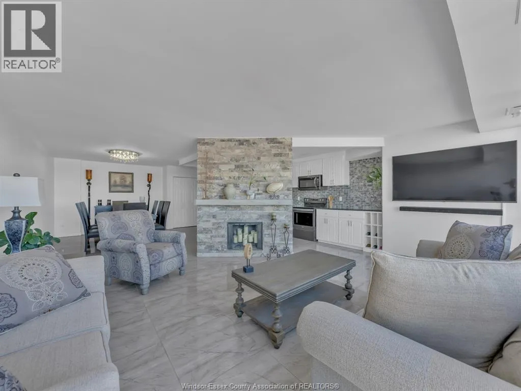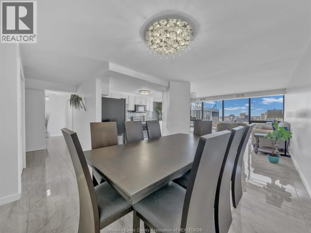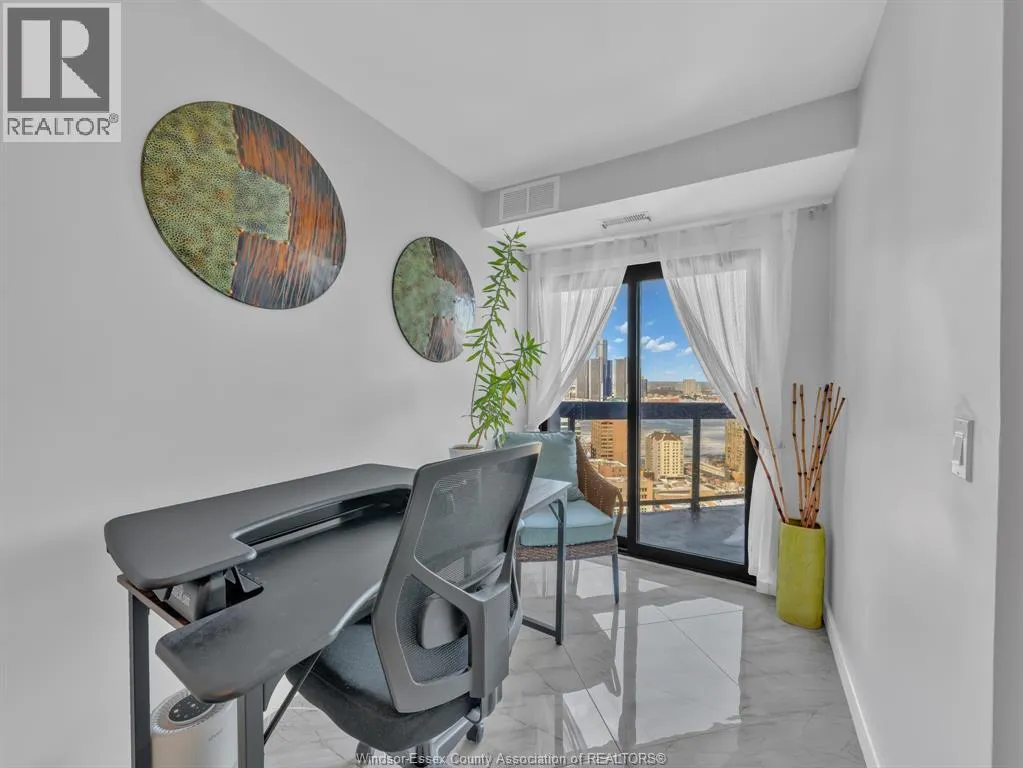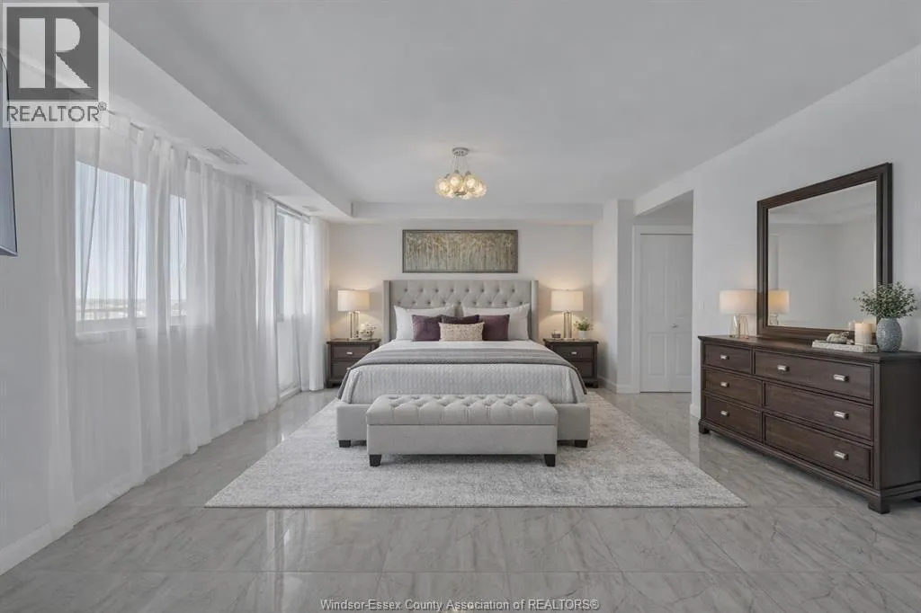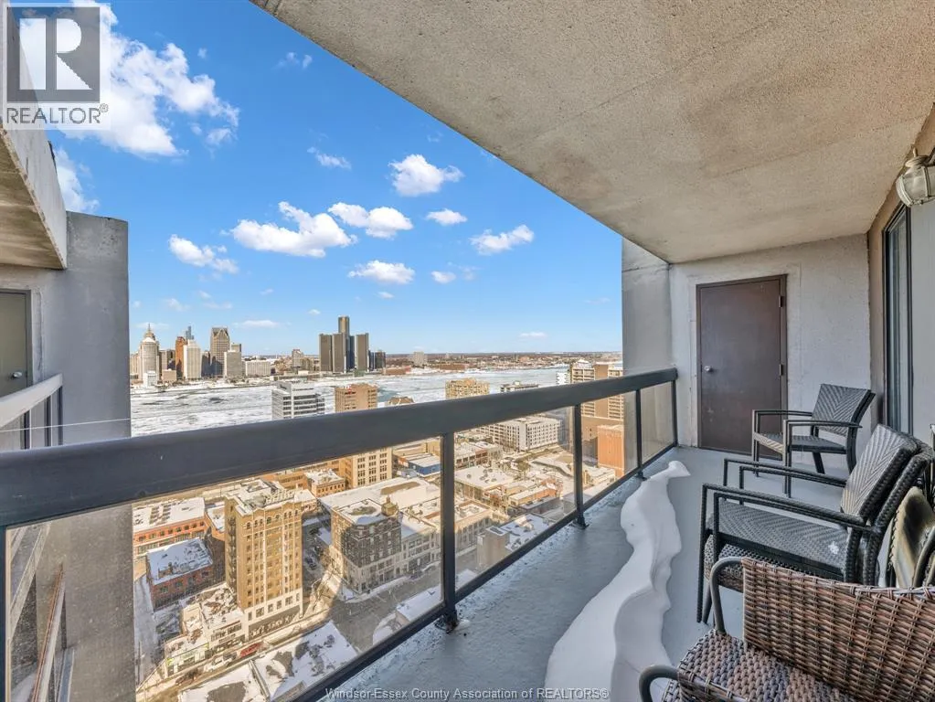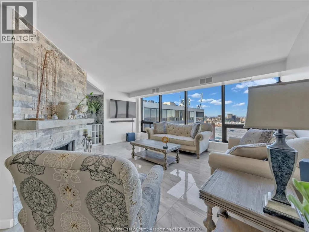 Welcome to an exceptional penthouse residence showcasing breathtaking panoramic views that epitomize luxury urban living. Originally designed as a 2-bedroom suite, this home has been thoughtfully transformed into an expansive 1-bedroom layout, complete with a spacious sitting area, a generous walk-in closet, and a private ensuite bathroom. The versatile floor plan allows for an easy conversion back to two bedrooms if desired. This penthouse is designed for both comfort and functionality, featuring a rare wood-burning fireplace, in-suite laundry, and a large, well-appointed kitchen ideal for everyday living and entertaining. Expansive living areas are filled with natural light, offering the perfect vantage point to enjoy city viewsâand even fireworksâfrom the comfort of your own living room. Ideally located in downtown Windsor, the building offers an impressive selection of amenities including elevator access, indoor salt water pool, party room, recreational Centre, sauna, and security/concierge services. All appliances are included, and furniture is negotiable as an added incentive. (id:27476)