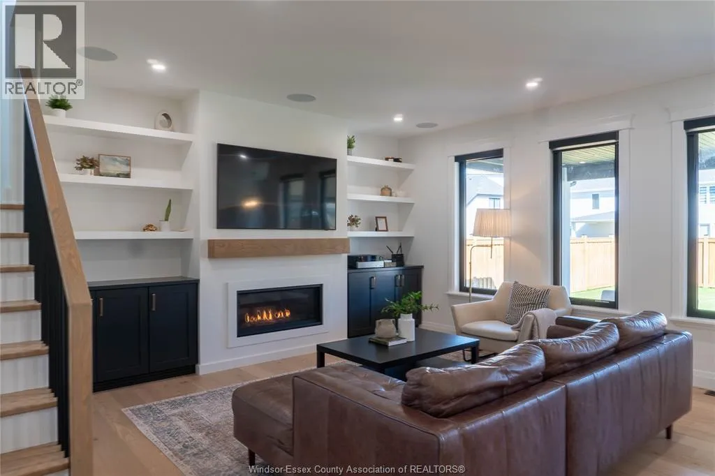 Beautifully designed and upgraded 2 story home situated in a family oriented neighbourhood in East Windsor. This home features an open concept floor plan allowing for plenty of natural sunlight and offers 4 spacious bedrooms and 2.5 baths. Tastefully designed this home includes plenty of upgrades through-out: extra large kitchen with stainless appliances, custom stairs with exposed tread, interior black framed windows, built in speaker system in the family room, high end light fixtures and window coverings, upgraded linear gas fireplace with custom built in shelving around, a owned tankless water heater, egress windows in the basement, oak staircase going into the basement and the list goes on (Full list in the documents tab) This home is exceptionally clean and is move-in ready. Perfectly suitable for a large family and offers plenty of storage, extra wide grade entrance for more sunlight, a large garage with 8ft doors, an extra wide driveway and a fully fenced yard with a wifi controlled sprinkler system. Conveniently located near all amenities, including schools, trails, shopping, medical facilities, and so on. The basement is roughed in for an additional kitchen & laundry area (id:27476)
