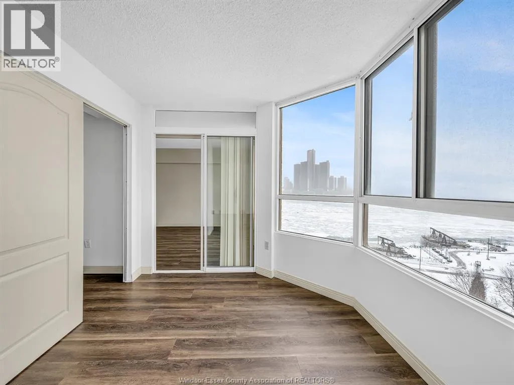 Enjoy downtown living with beautiful water views in this 2-bedroom, 2-bath condo. This unit features a foyer, kitchen area, & a spacious living room with office space showcasing views of the Detroit River. The primary bedroom includes a walk-in closet & en-suite bathroom, along with a second full bathroom & in-suite laundry. Utilities are included, appealing to students or investors. Amenities include a party room, exercise room, outdoor terrace, one underground parking spot & a storage locker. (id:27476)