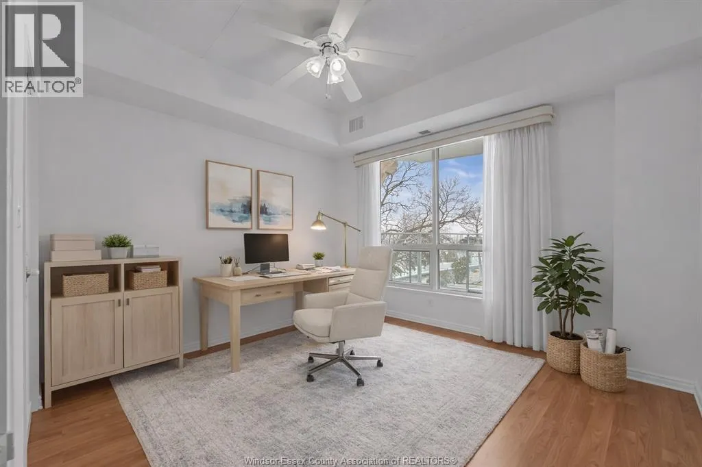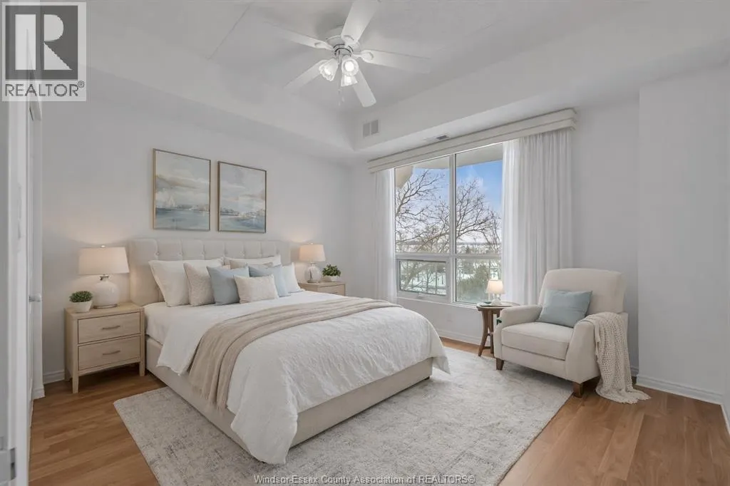 This spacious and bright 2-bedroom, 2-bathroom condominium is located in The Pinnacle boasting nearly 1200 sq ft , The pinnacle building one of Windsorâs most prestigious and highly sought-after buildings, recognized as one of the finest residences in the city. Set along the coveted Riverside Drive, the unit offers beautiful river views in a premier location. Directly across the street, a tranquil escape with its manicured grounds and the iconic Charles Brooks Peace Fountain floating on the Detroit River. The best of East Windsorâs amenities, dining, and everyday conveniences are all just moments away. The unit features a generous, well-appointed layout with in-suite laundry, updated flooring, fresh paint, and newer appliances included for added value. A private balcony showcases northeast-facing views of Windsorâs stunning riverfrontâperfect for relaxing or entertaining. Residents of The Pinnacle enjoy an exceptional selection of amenities, including a fitness centre, indoor pool and sauna, meeting room, and secure underground parking complete with a car wash station. A rare opportunity to own a landmark building. Call today to book your private showing. SOME PHOTOS ARE VIRTUALLY STAGED (id:27476)