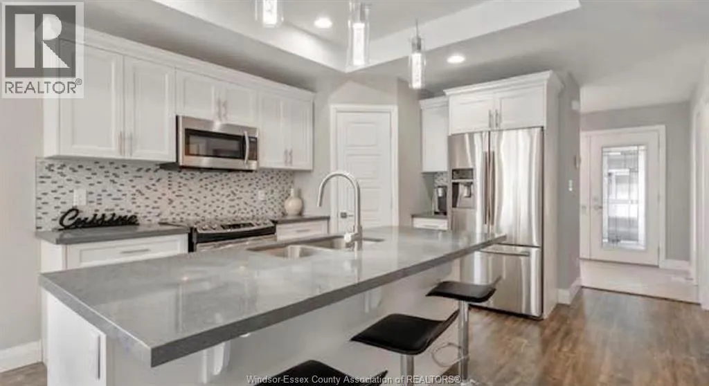 Beautifully designed townhome end-unit filled with natural light and an abundance of windows throughout. The open-concept kitchen and living space create a bright and inviting atmosphere, ideal for everyday living and entertaining. Features ample closet space and a thoughtful layout with two spacious bedrooms and two full bathrooms on the main floor. The primary bedroom showcases an elegant tray ceiling, while the living room features a stunning tray ceiling, adding architectural interest and a sense of luxury. The fully finished basement offers two additional bedrooms, one full bathroom, and a comfortable living room. Ideally located close to amenities including Devonshire Mall, shopping, restaurants, trails, and parksâoffering both style and convenience. Features a beautiful sunroom, with flexibility to change the current glass garage doors to a regular garage door. Built with high-quality finishes throughout. (id:27476)