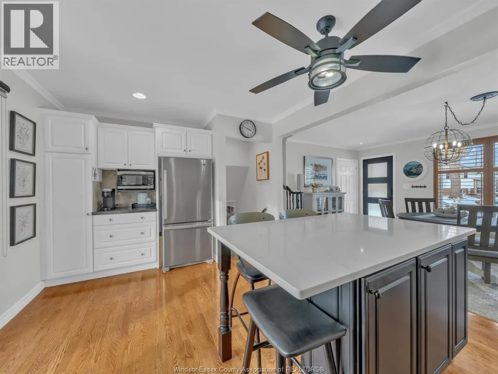 Offered for the first time on the market, this beautifully renovated, move-in-ready home is nestled on a quiet cul-de-sac in the highly desirable East Riverside neighbourhood. Feat. 3 spacious beds, 1 full bath, and a fully finished basement, this home offers comfort and functionality for the whole family. Enjoy beautiful hardwood floors throughout and a stylish kitchen complete with quartz countertops, large island and ample cabinetry. The finished basement provides additional living space, perfect for a family room, recreation area, or entertaining. Ideally located just steps from Ganatchio Trail and within walking distance to the waterfront, marina, parks, restaurants, and everyday amenities, this is a rare opportunity to own a turnkey home in one of East Windsorâs most sought-after locations. Furnace & A/C (2017). (id:27476)