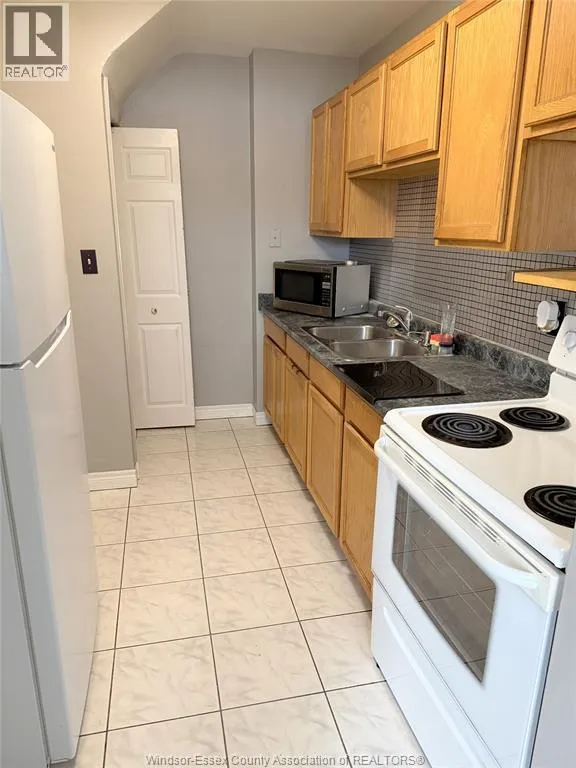 Labelle to Partington end of street parking lot for building. South Windsor Condo, corner unit, own parking, 2-bedrooms, one bath, full basement with washer and dryer. Main floor features living room, with sliding doors to patio, dining room, kitchen with fridge and stove. Upstairs feature 2-bedrooms and a full washroom. Full high basement with laundry facilities and furnace. This unit is fully air conditioned to enjoy your summers. Area of good school district and conveniently located near all amenities. Easy access to highways and bridge to USA. (id:27476)