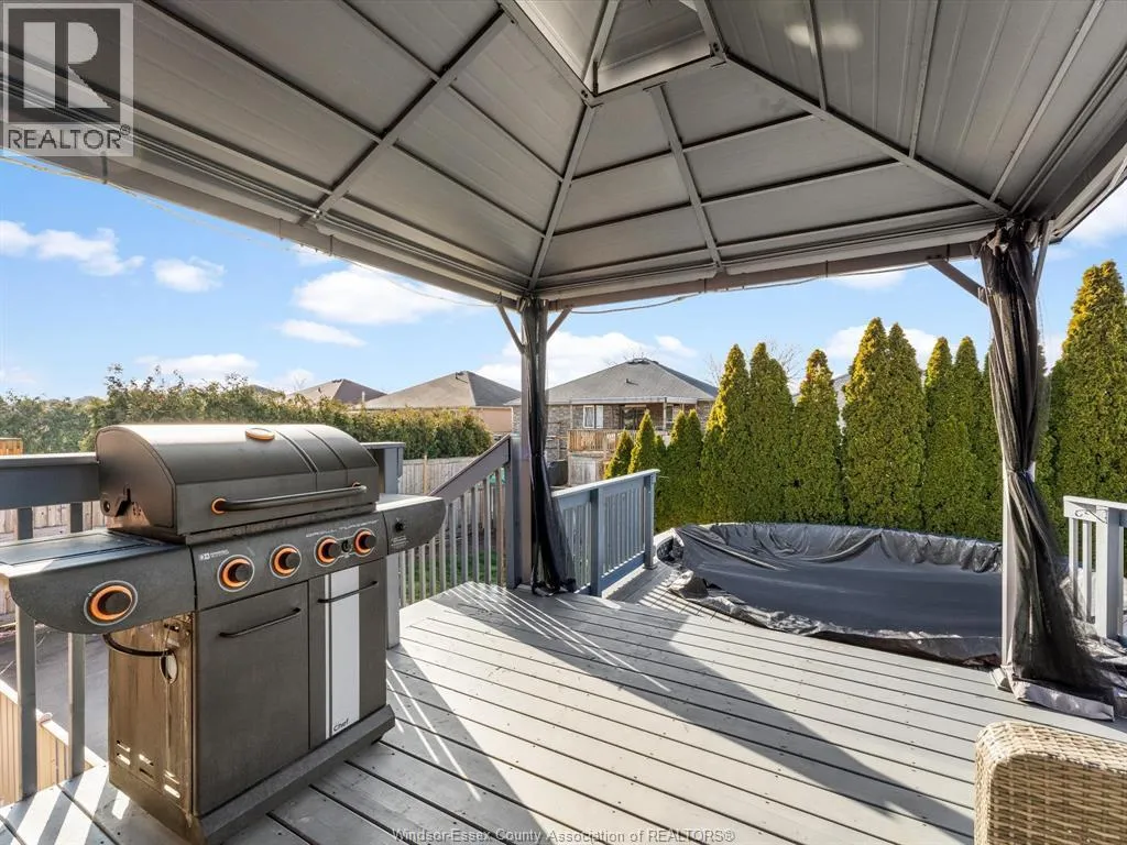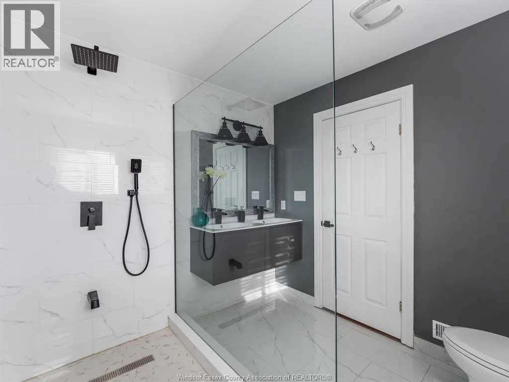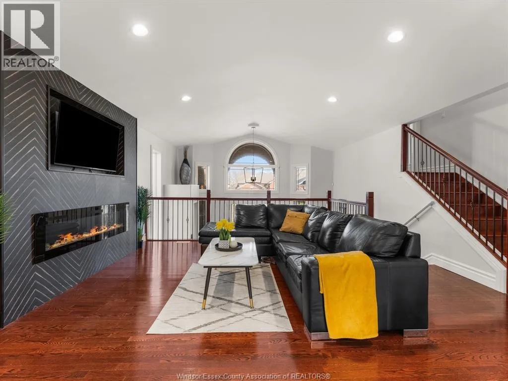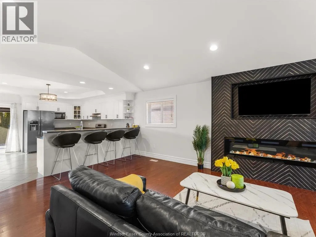 Very spacious full brick and stone raised ranch with a bonus room, located in a highly desirable East Windsor neighbourhood. This home features a bright, open-concept floor plan with generous living space, offering 3+1 bedrooms and 3 full bathrooms. The main level boasts a large kitchen with adjoining dining area and an expansive living roomâperfect for entertaining.The private second-level primary suite includes a walk-in closet and a beautifully updated ensuite bath. The lower level offers a fourth bedroom, a large family room with gas fireplace, a wet bar, and a convenient grade entrance. Outside, enjoy a nicely landscaped yard designed for privacy, a covered rear porch, above-ground pool, and a stamped concrete driveway. Situated in a safe, family-oriented neighbourhood with excellent schools, just steps from Windsorâs riverfront, scenic trails, parks, shopping, and more. (id:27476)