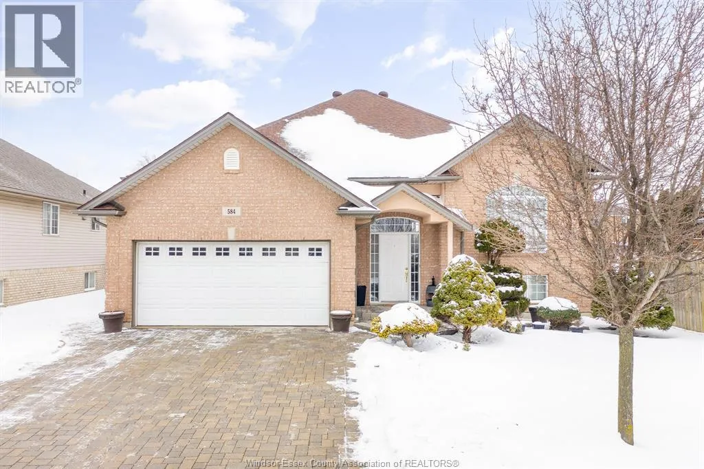 Welcome to 584 Bellagio Drive, where everyday living is shaped by nature, comfort, and community. Nestled in one of East Windsorâs most desirable neighbourhoods, this home is steps from parks, scenic walking, Ganatchio Trail and Riverside, making it easy to enjoy morning walks, evening strolls, and time outdoors year-round. Set on a premium-size lot with nicely landscaped grounds, sprinkler system and a covered back porch, the property offers a peaceful retreat for relaxing or entertaining. Inside, the 3+1 bedroom, 2.5 bathroom layout is fully finished from top to bottom, with bright, inviting spaces designed for both everyday living and gatherings with family and friends. The finished basement features a second kitchen, ideal for hosting guests or extended family. Enjoy year-round comfort with furnace/AC replaced in 2022, along with the convenience of central vacuum. With green space at your doorstep and amenities close by, this is a home that truly supports a relaxed, active, and connected lifestyle. (id:27476)