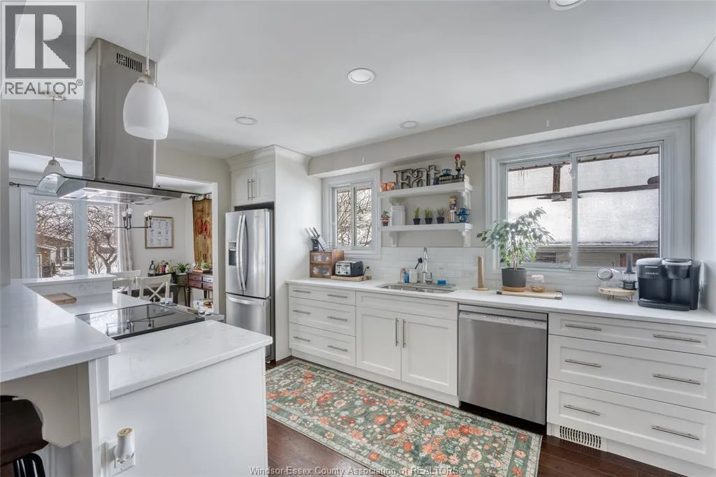 Set foot in 9485 Ridge, a very spacious and gleaming home where the renovations of this charming family residence can be noticed as soon as you walk in. This 5 bedroom, 2 full bathroom property is situated right across the Ganatchio Trail connector, conveniently located just steps away from the elementary school and numerous amenities, yet tucked away in a mature East Windsor, tree-filled neighbourhood. In this bi-level home you will find an open-concept, redeveloped kitchen w/ modern stainless steel appliances, quartz countertops and a comfortable living and dining room area with plenty of natural light. As you walk down the hall, you are welcomed by a newly renovated bathroom and three good-sized sleeping spaces. This cozy home welcomes a growing household with its surprisingly spacious lower level featuring two additional bedrooms, a second full bath, an in-home office and a family room with a real wood fireplace, all rooms featuring oversized, egress windows. The possibilities for additional living space are wide open, offering great sq. ft plus a backyard that features 120 depth, with a nicely-kept in-ground pool and a cement pad off of the rear entrance off of the home. Check out this turnkey, inviting property with all of its updates and capabilities for growth and leisure today! (id:27476)