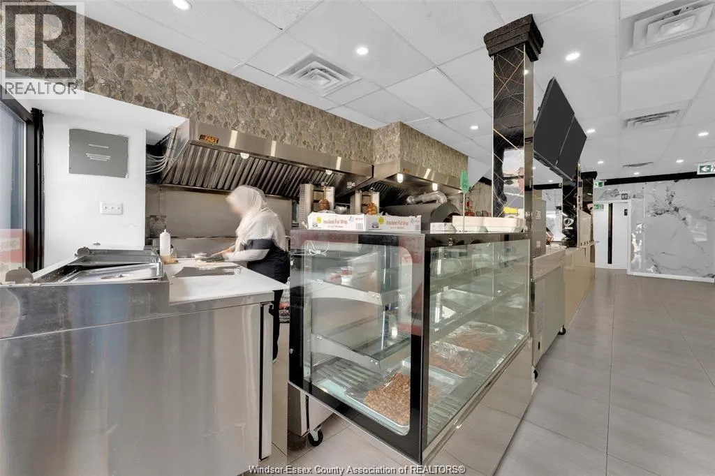 A golden opportunity to lease a turnkey restaurant or coffee shop space in a prime location! Prime corner commercial location offering approx. 2,400 sq. ft. in a high-visibility, high-traffic corridor. Fully upgraded space, featuring premium porcelain tile flooring, oversized windows for maximum exposure, and modern interior finishes. Includes a newer (under 1 year) 16-ft commercial hood with fire suppression, pre-installed gas lines, updated electrical, lighting, and HVAC. Three main floor washrooms (incl. accessible), plus a spacious basement with additional storage and washrooms. Surrounded by established businesses and within walking distance to multiple condo buildings, providing strong built-in customer base. (id:27476)