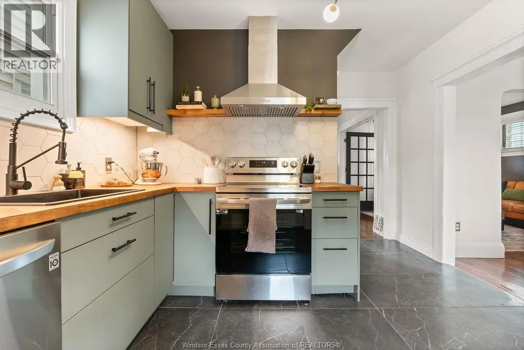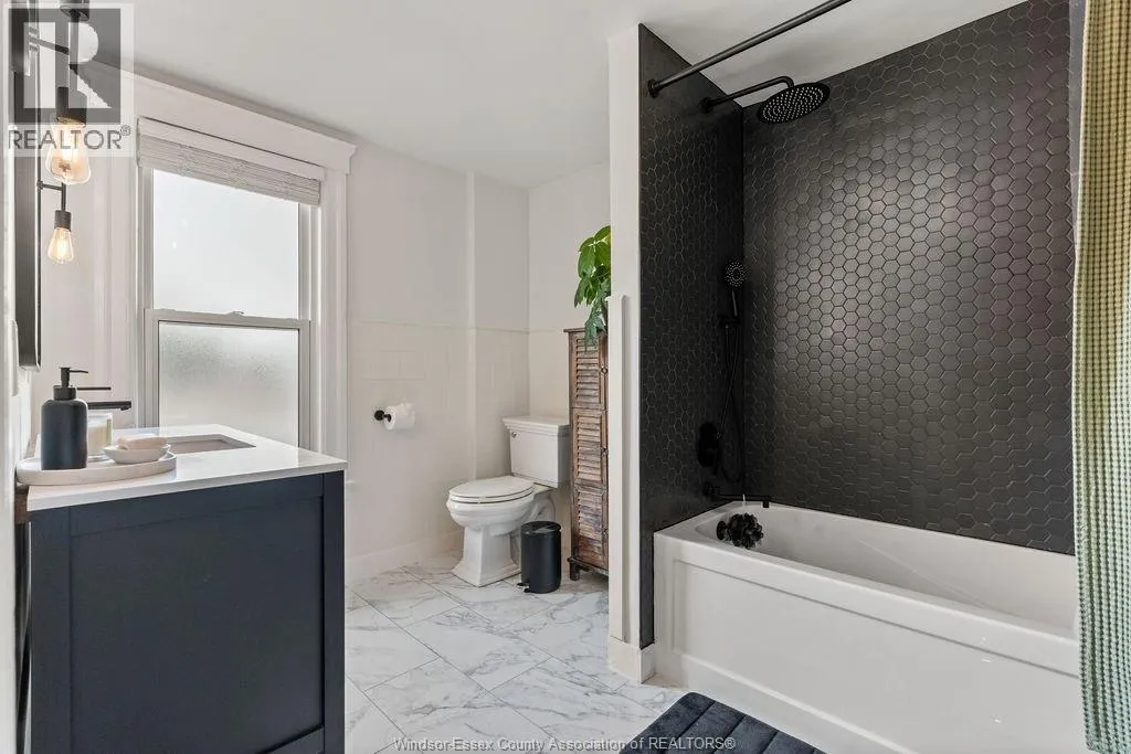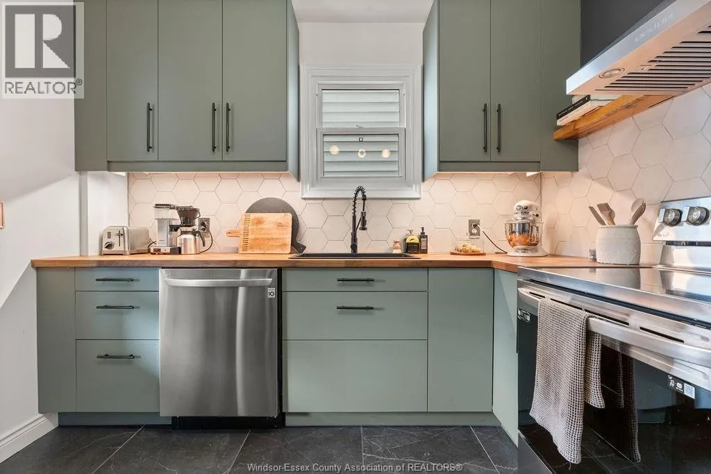 Thoughtfully renovated and exceptionally well cared for, this 3-bedroom, 1.5-bathroom home offers comfort, character and peace of mind. The main floor boasts 8.5-foot ceilings, creating a bright and inviting atmosphere throughout. Recent upgrades include brand-new electrical (2022), a stylish new kitchen with matching LG appliances (2022), and a beautifully finished upper bathroom (2024). Outside, enjoy the beautifully landscaped backyard complete with a pergola covered seating area, plus the convenience of both a covered back porch and a covered front porch for year-round enjoyment. A solid cinder block-to-roof garage with hydro, plus a cement parking pad alongside, provides excellent functionality and storage (garage door opener currently not operational). This home is as pleasant as it is practicalâoffering historic Walkerville charm with modern updates that ensure worry-free living. (id:27476)