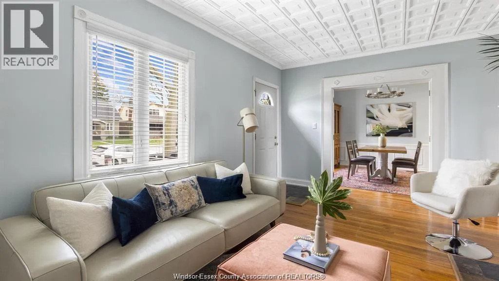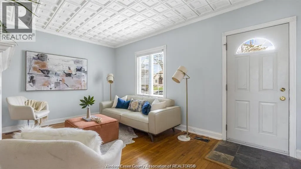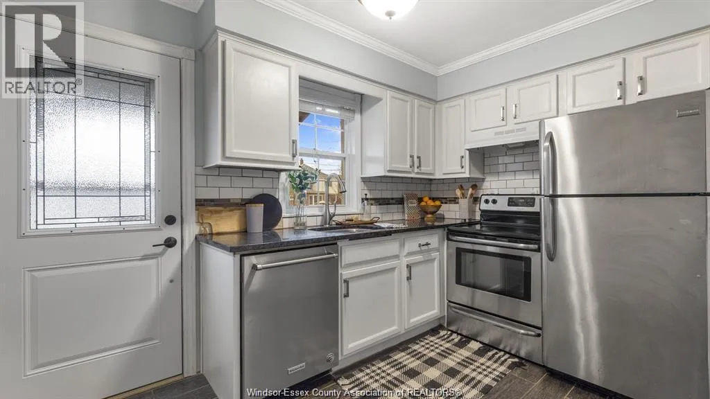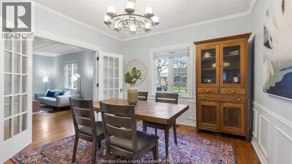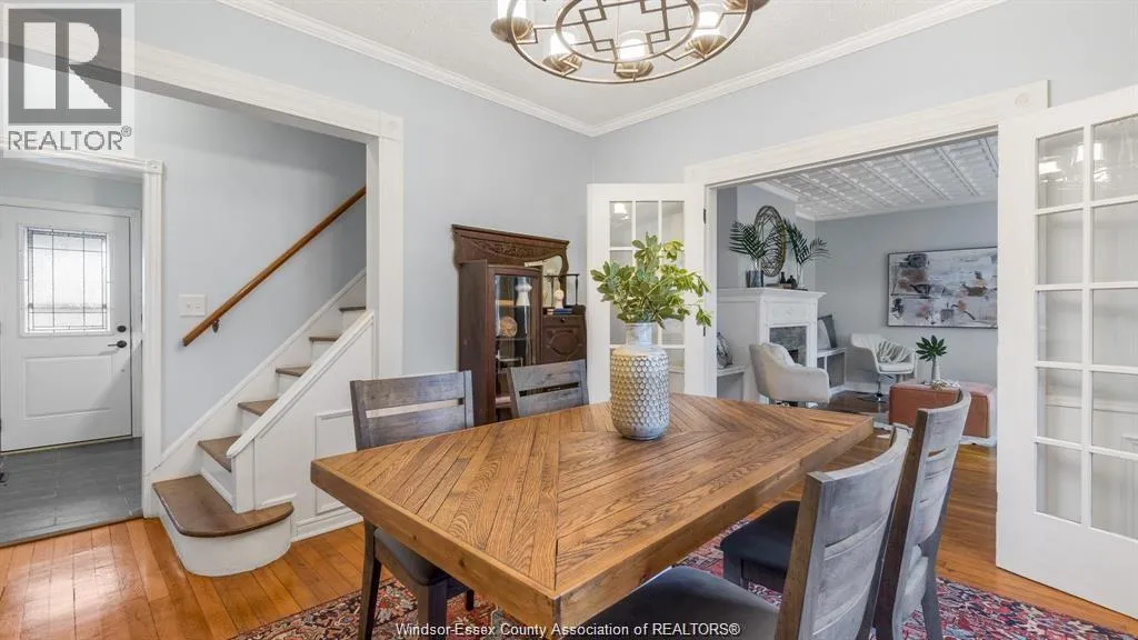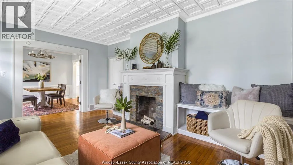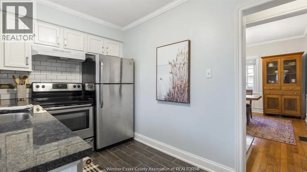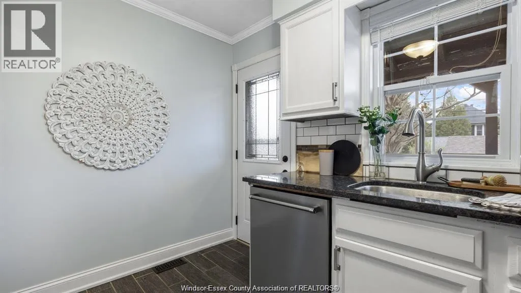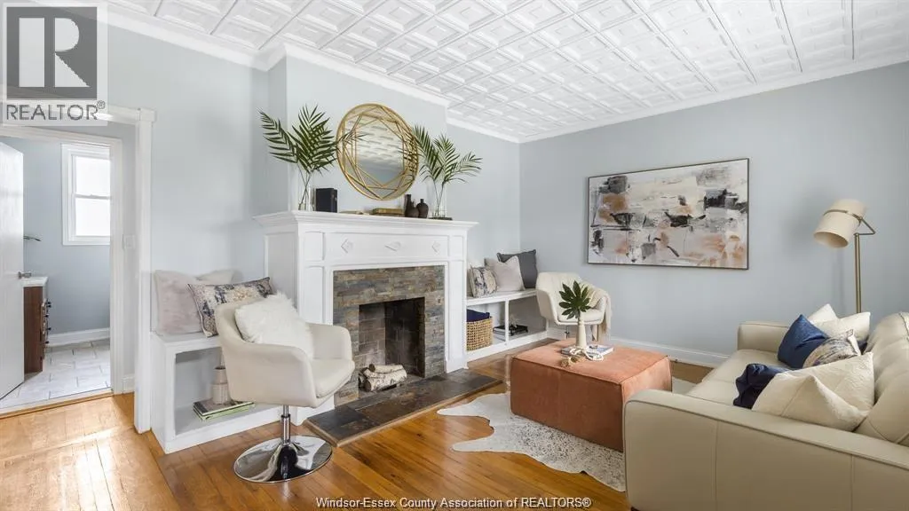 This adorable Walkerville home will ""wow"" you with its perfect blend of modern upgrades and preserved charm. Enter into your cozy living room with real wood fireplace, built in shelves, coffered ceiling, and large windows. Host dinners in your formal dining room with french doors, wainscoting, and elegant lighting. Fresh modern kitchen includes granite counter tops, tile back splash, and stainless steel appliances. Large updated 4pc bath is conveniently located on the main floor along side one of the bedrooms. Upper floor features two large bedrooms with window alcoves and impressive closet space. Rear yard parking on a very quiet residential street in Olde Walkerville. (id:27476)