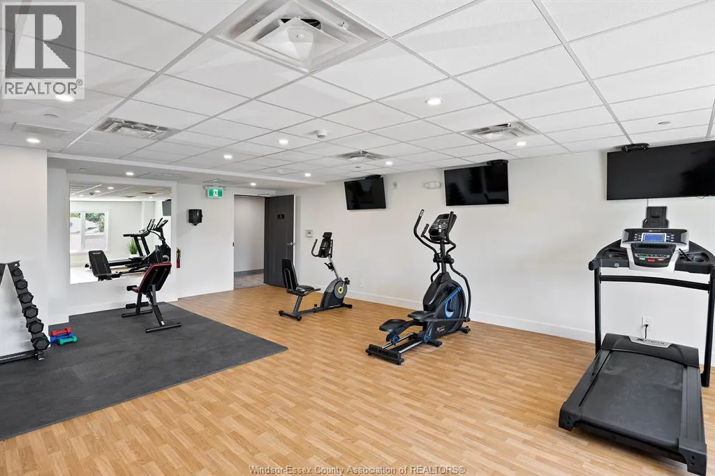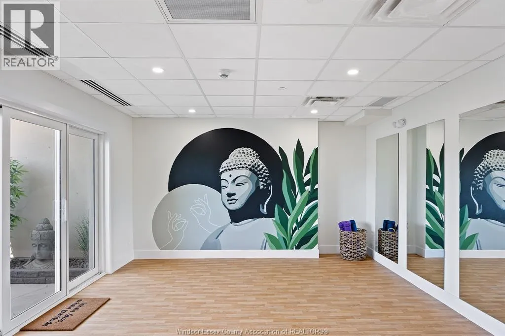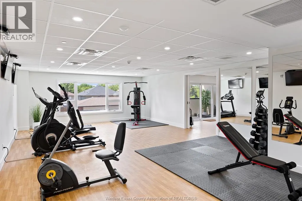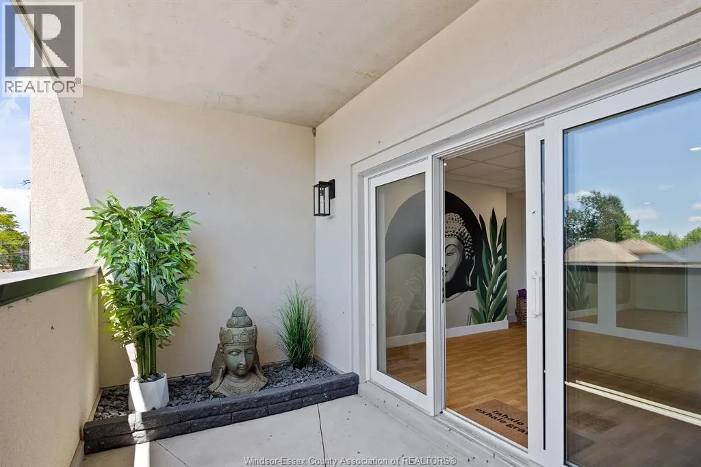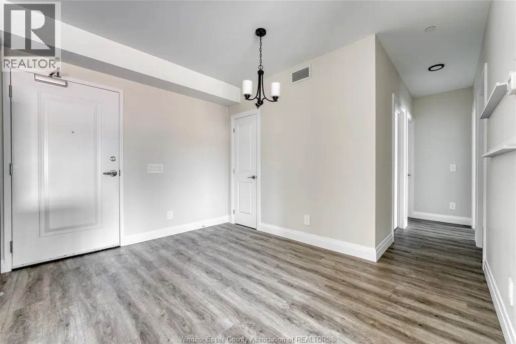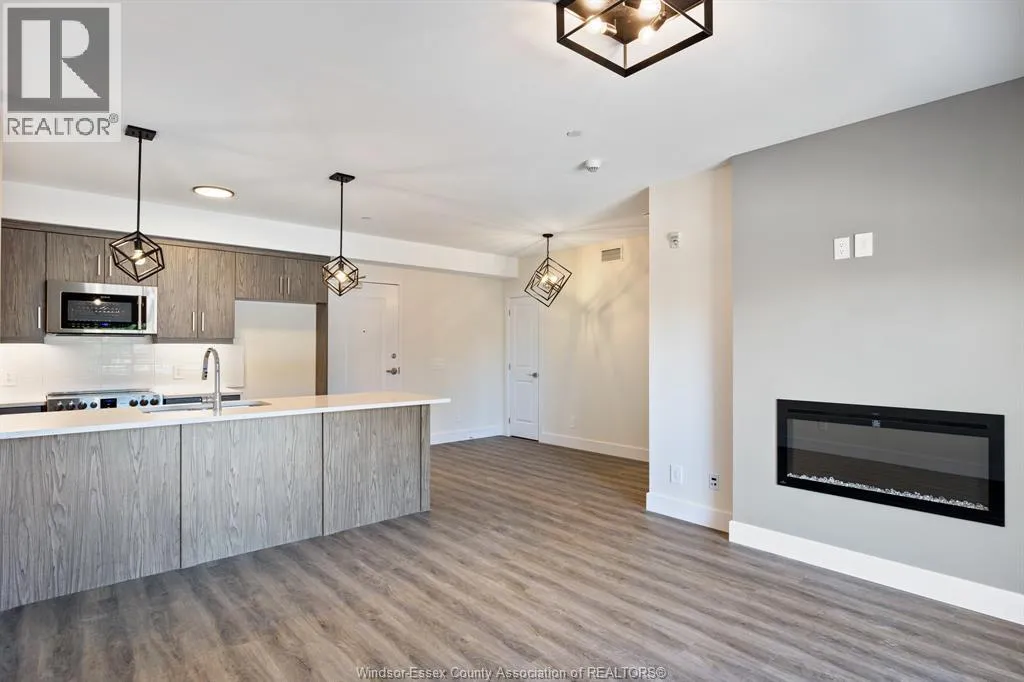 Welcome to Riverside's premier condominium, The Edgar by Brotto Development. This building will impress you with its gorgeous finishes and unparalleled amenities. This well appointed 2 bed 2 bath professional suite is designed with tasteful, modern details, including a statement wall with an electric fireplace in the living room and double extra wide patio doors. This spacious, well-maintained newer construction will leave you with no hassle, allowing you to lock and leave. You will also love the primary bedroom including a walk-through closet w/shelving and an ensuite bath. Featuring 2 spacious sleeping spaces with bright windows and 2 full baths, this space is ideal for working professionals and retirees. Outside you will notice a generous balcony will allow you to enjoy the urban life outside of the suite. This luxurious building also offers an Outdoor Courtyard with BBQ's, Fitness Centre, Yoga Studio, Club Lounge, and a Storage Locker. A beautifully crafted building and suite in Windsor's Riverside neighbourhood, truly a must see! (id:27476)
