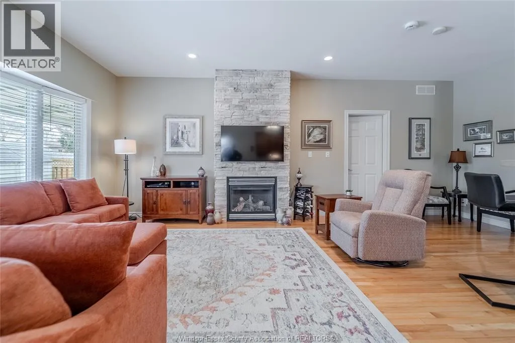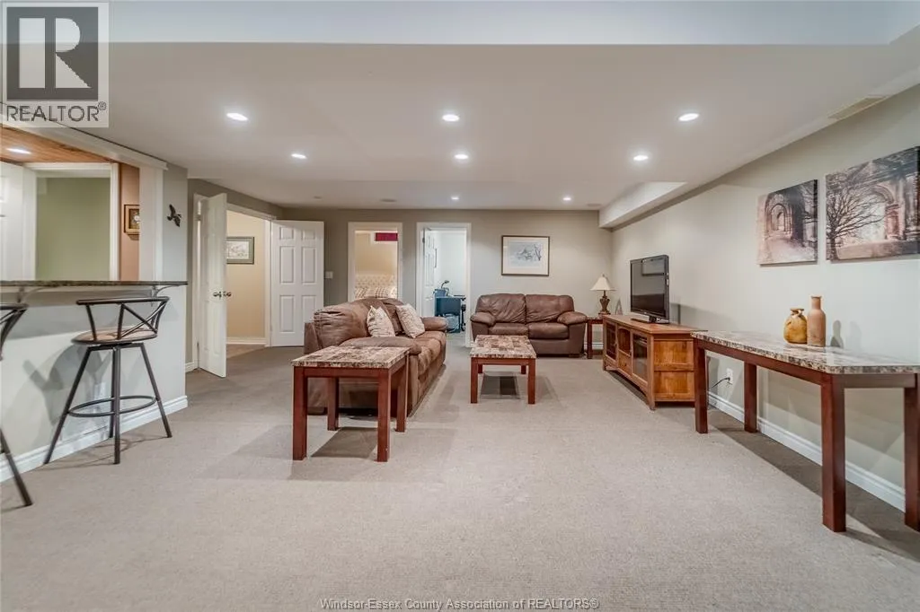 Detached Brick Ranch in quiet neighbourhood on the Border of Tecumseh in Riverside! A fantastic alternative to a condo or townhouse, this well-maintained detached ranch offers approximately 1,700 sq ft on the main floor with 4 bedrooms and potential for a 5th (currently used as a den). Beautiful kitchen with quartz countertops, large breakfast bar, and separate eating area. Spacious living room with stone gas fireplace, formal dining room, large primary with ensuite, second bedroom and bath, plus main floor laundry. Fully finished lower level features 2 additional bedrooms, rec room with bar, 4-piece bath, art room, workshop, and plenty of storage. Outside has an attached 2 car garage, park-like backyard with pergola, cement patio, and gardens. Updates including roof, furnace, and A/C (approx. 2018). New sod in front yard (2025). Donât miss this opportunity in a prime Riverside location! (id:27476)