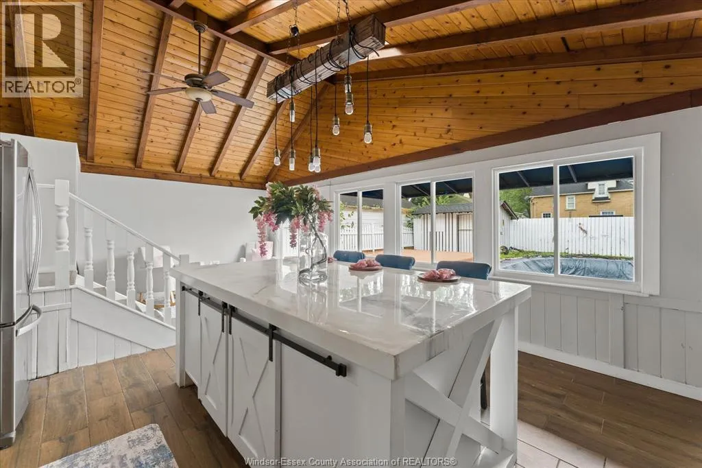 Situated on a quiet, tree-lined street in the heart of Riverside, 285 Belleperche offers space, flexibility, and modern updates in a location that's hard to beat. This renovated brick home delivers exceptional value for growing families or buyers looking for multi - generational living or rental potential. With a total of 7 bedrooms and 2 full bathrooms, the layout is designed to adapt to a variety of needs. The main level highlights a bright, open-concept kitchen built for entertaining, complete with a large island, ample cabinetry, skylights, west- facing windows that bring in abundant natural light, and a living room with a natural fireplace adds warmth and character. The finished basement features a private side entrance, a newly installed kitchen, 3 bedrooms, and a full bath-ideal for extended family or added income . Step outside to a fenced backyard with an in-ground pool (in as-is condition) and pool house, creating a perfect space for summer enjoyment. (id:27476)