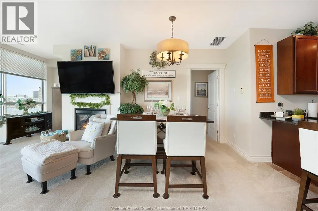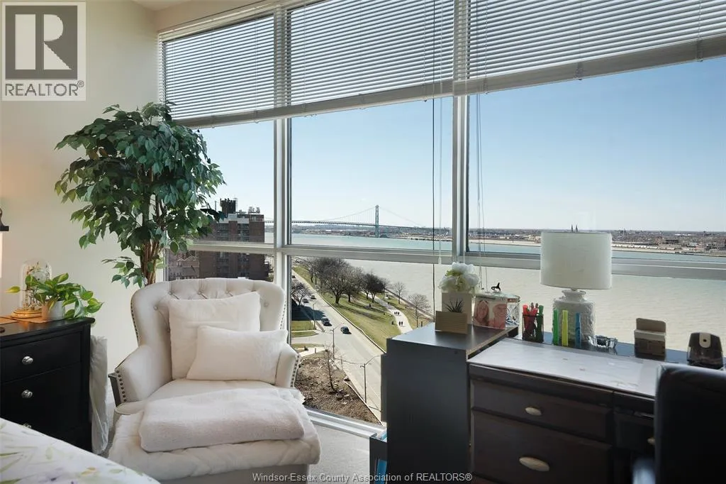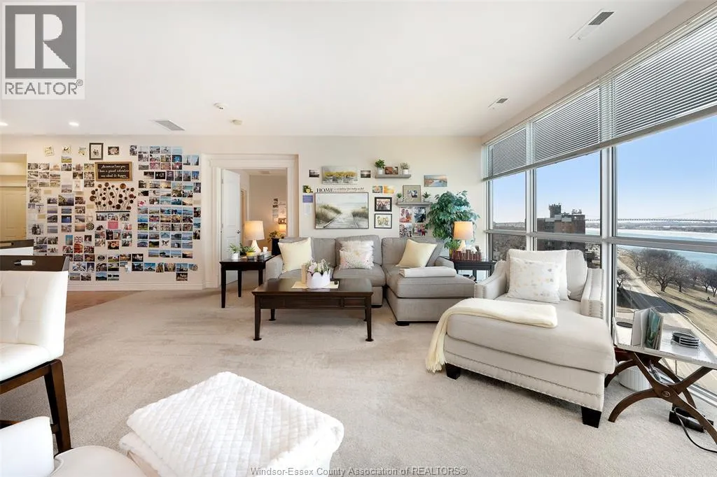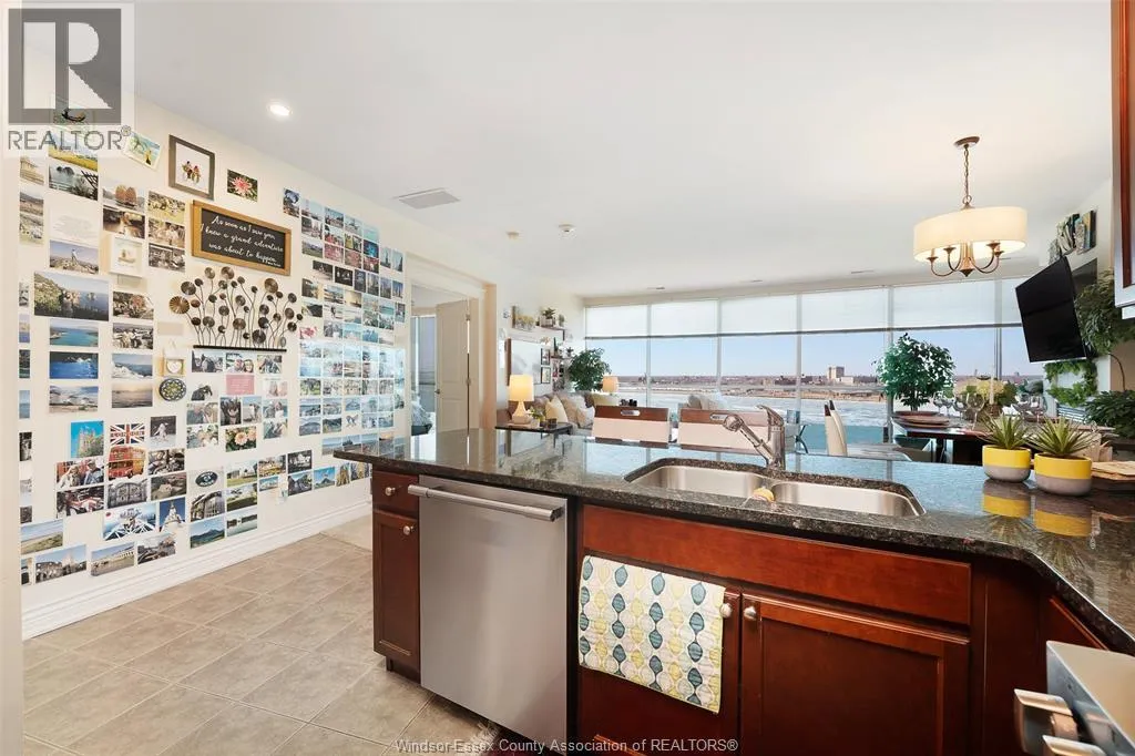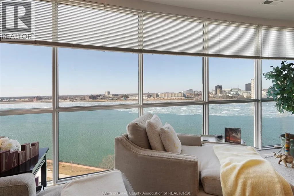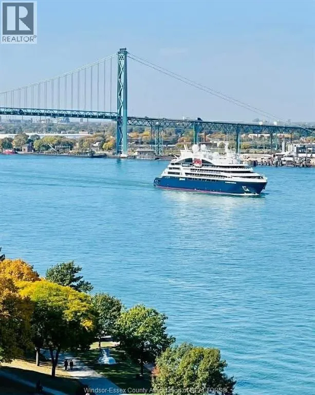 Welcome to Beautiful Portofino! This Stunning water view two bedroom, 2 bath residence with larger than average sqft of approx. 1547 sqft offers breath taking northwest views and unforgettable sunsets. This thoughtfully designed suite features water views from both bedrooms, creating a serene and light filled living experience. The stylish kitchen with granite countertops, seamlessly flowing into the open-concept living room with cozy fireplace to dining area. Perfect for both everyday living and entertaining. Spacious primary bedroom includes walk in closet and large ensuite. Step out onto your private balcony to take in the water views and evening skies. Additional highlights include in-suite laundry, underground parking, and dedicated storage locker, providing both comfort and convenience. Amenities: rooftop terrace, gym, party room, sauna, billiard room, 2 guest suites, waterfront trails for biking and walking just a few steps away. Minutes to UofW and US Border. (id:27476)