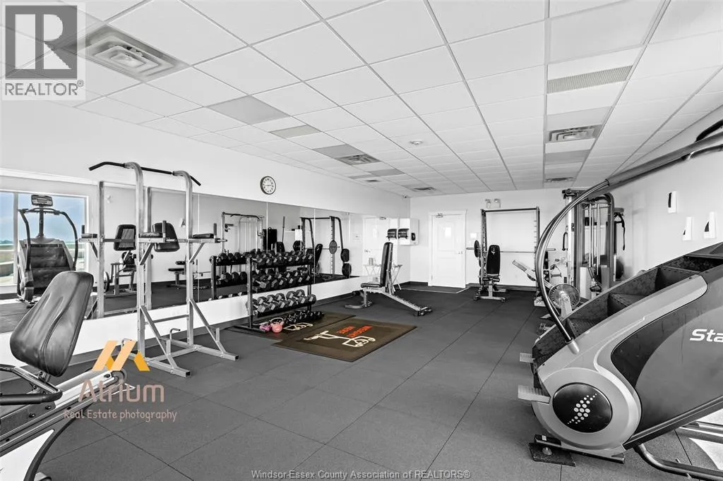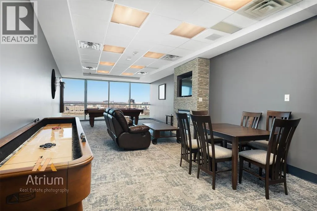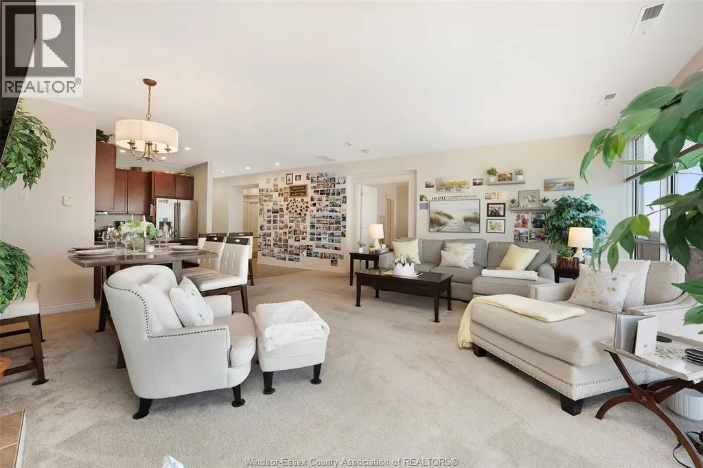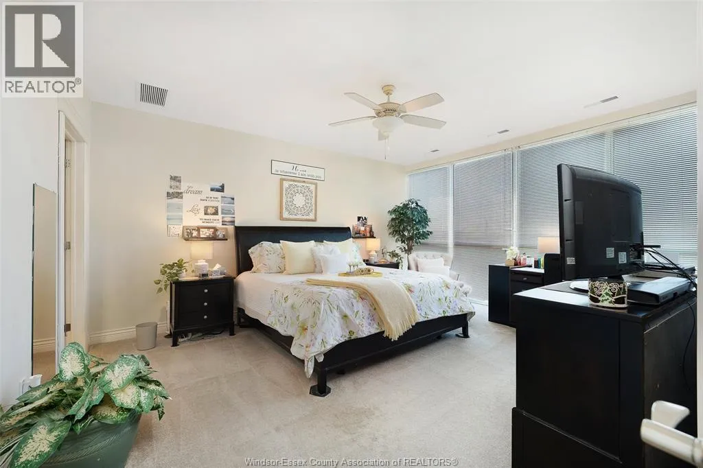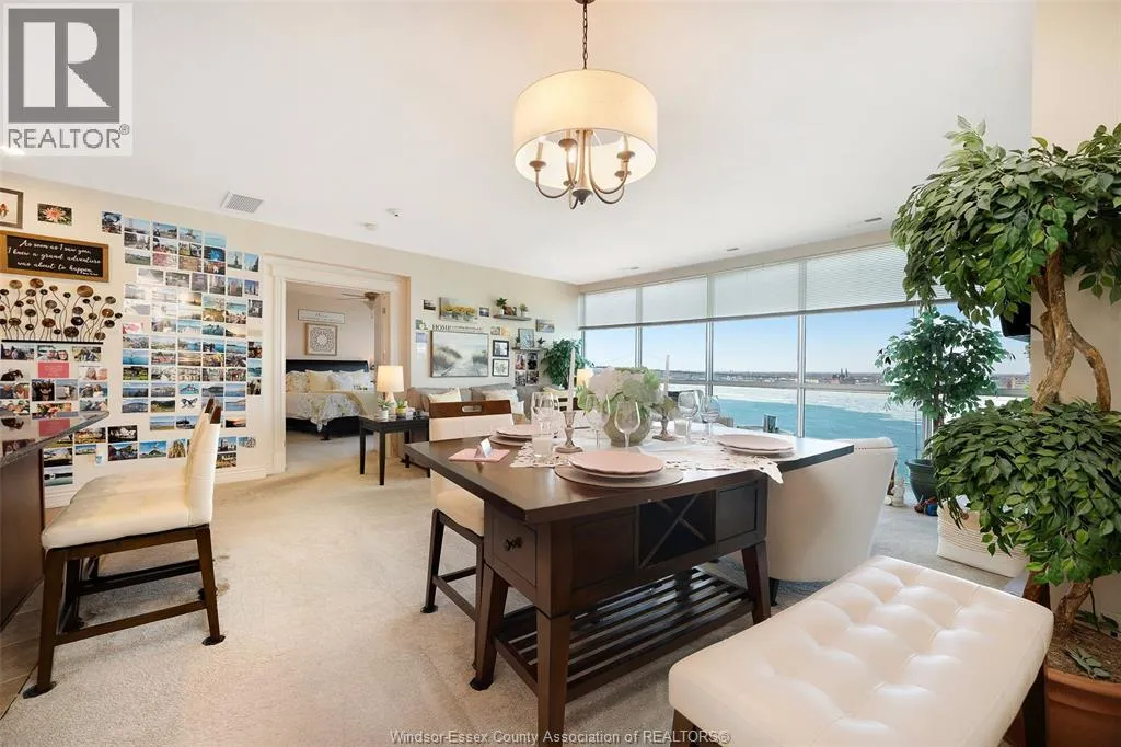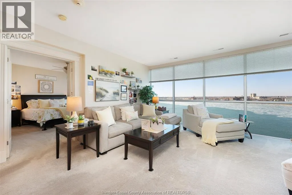 Welcome to Beautiful Portofino! This Stunning water view two bedroom, 2 bath residence with larger than average sqft of approx. 1547 sqft offers breath taking northwest views and unforgettable sunsets. This thoughtfully designed suite features water views from both bedrooms, creating a serene and light filled living experience. The stylish kitchen with granite countertops, seamlessly flowing into the open-concept living room with cozy fireplace to dining area. Perfect for both everyday living and entertaining. Spacious primary bedroom includes walk in closet and large ensuite. Step out onto your private balcony to take in the water views and evening skies. Additional highlights include in-suite laundry, underground parking, and dedicated storage locker, providing both comfort and convenience. Amenities: rooftop terrace, gym, party room, sauna, billiard room, 2 guest suites, waterfront trails for biking and walking just a few steps away. Minutes to UofW and US Border. (id:27476)