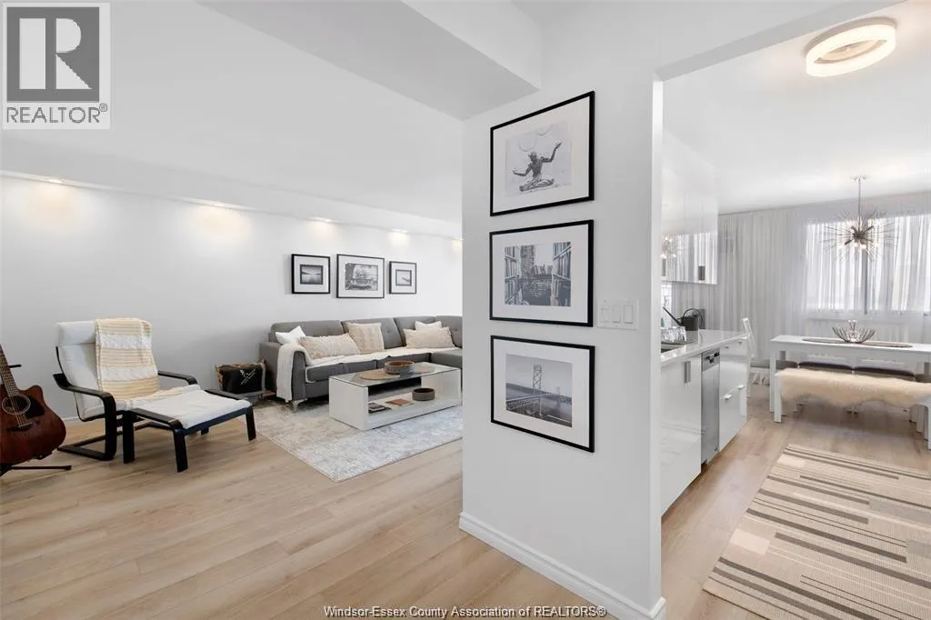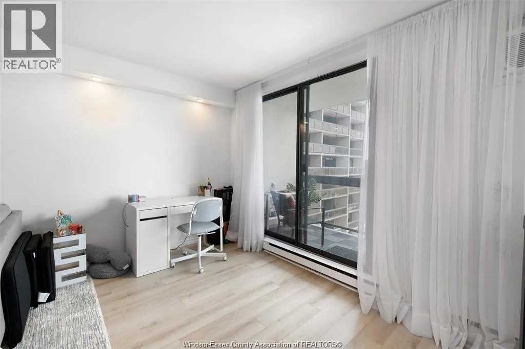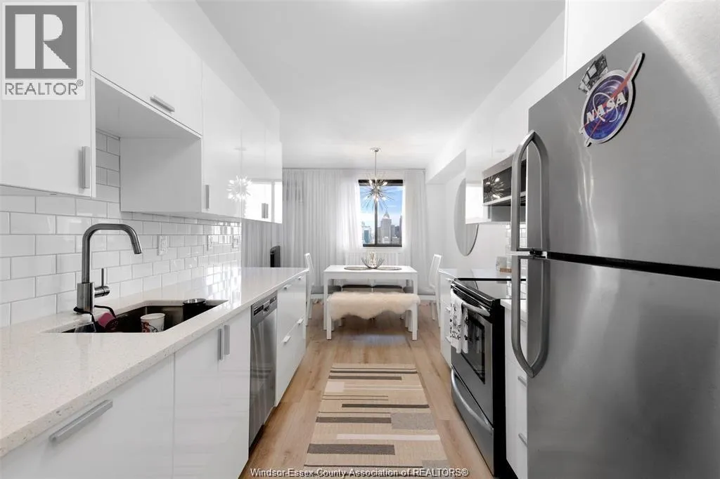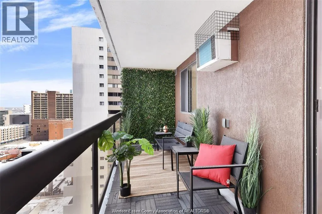 Soaring above the city on the 18th floor, this fully renovated 1-bedroom condo combines luxury, convenience, and unbeatable views of the Detroit skyline. The open-concept design features a bright and spacious living and dining area, a sleek modern kitchen, and versatile layout with potential to convert to a 1-bedroom plus den or full 2-bedroom suite â perfect for professionals, growing families, or investors seeking maximum flexibility. Enjoy two private balconies â including one off the primary bedroom â for the ultimate indoor-outdoor lifestyle. This executive unit also includes underground parking and a storage locker. Resort-style amenities await with an indoor pool, gym, sauna, party room, and 24-hour security. Located in the heart of Windsor, you'll be steps from shops, restaurants, the waterfront, and transit. Move-in ready with incredible rental and conversion potential. (id:27476)