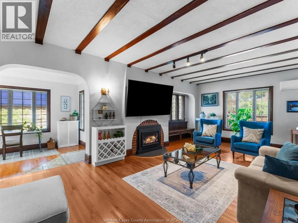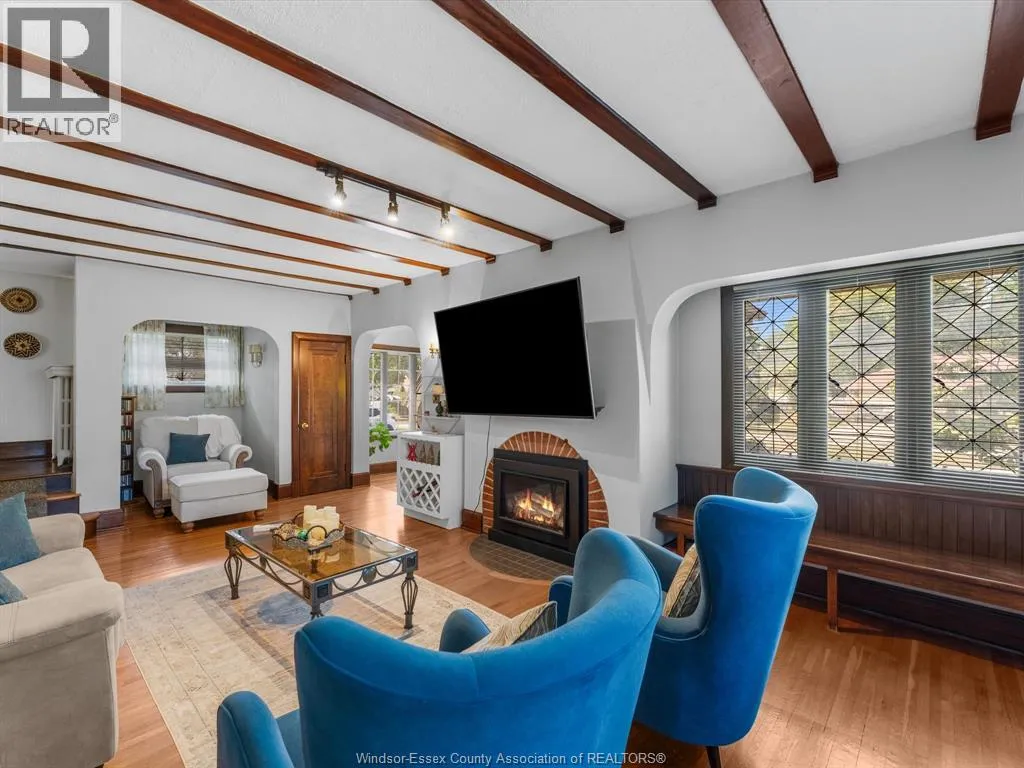 Welcome to 450 Matthew Brady in prestigious Olde Riverside. This 3-bedroom, 3-bath home offers timeless charm with modern comfort. The main floor features stained glass windows, a cozy gas fireplace, den, updated kitchen with dining area, and a family room with a second fireplace. Patio doors lead to your private, fully fenced yard with tranquil gardens. Upstairs offers 3 bedrooms and a full bath, while the finished basement adds a 3-piece bath, rec room, office/den, laundry, and ample storage. Just steps from the waterfront and minutes to boutique shopping, trails, parks, schools, and transit, this rare Riverside gem is ready to welcome you home. (id:27476)