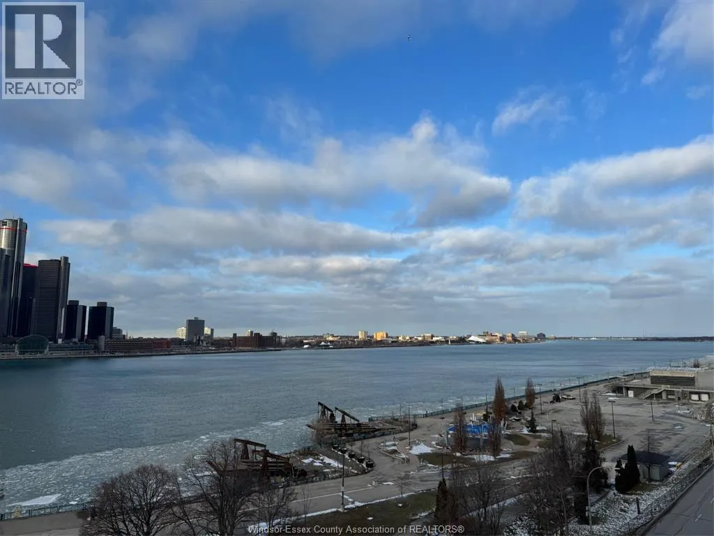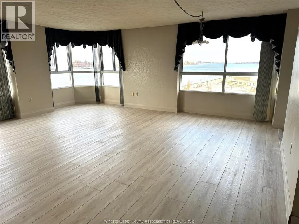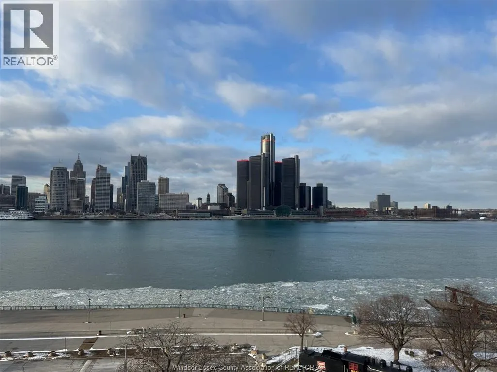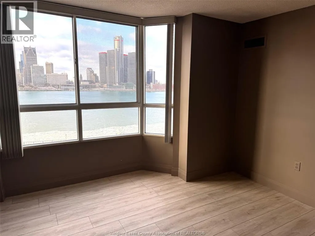 ONE BLOCK EAST OF OUELLETTE AVE Here is a fabulous opportunity to own a front unit at ""75 Riverside East"" with panoramic views of the Renaissance Centre and the Detroit River from every room! Featuring 1,335 square feet with an open concept living room and dining room, kitchen with fridge, stove, dishwasher and microwave and separate eating nook. The principal bedroom has a walk-in closet and 4 piece ensuite bath. Front facing second bedroom and adjoining 4 piece guest bathroom and in-suite laundry with washer and dryer. The flooring has been updated in February, 2026 with beautiful vinyl planks. These units seldom are for sale !! Immediate possession. This is a wonderful building with great staff, third floor terrace with trees, patio furniture and bar-b-que, fully equipped exercise centre and a main floor workshop! Plus an amazing roof top garden with 360 degree view of the city and waterfront. One underground parking space is included! (id:27476)