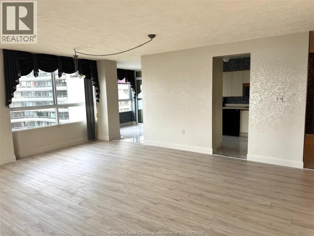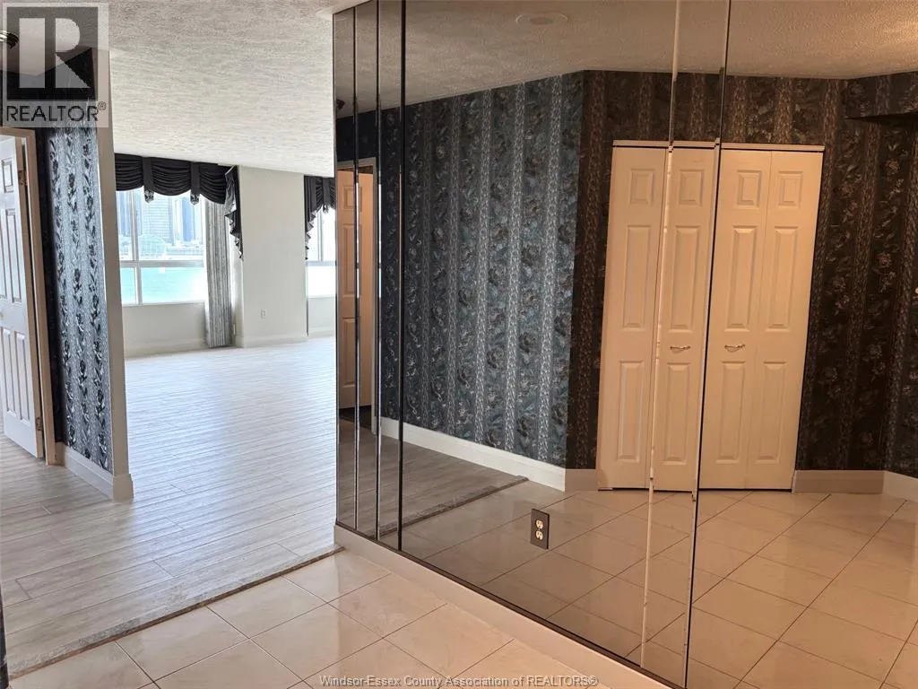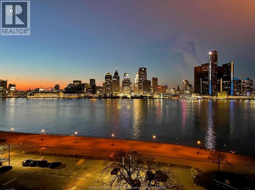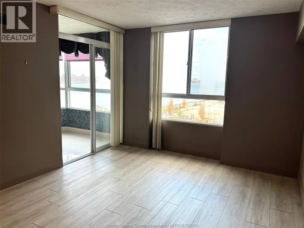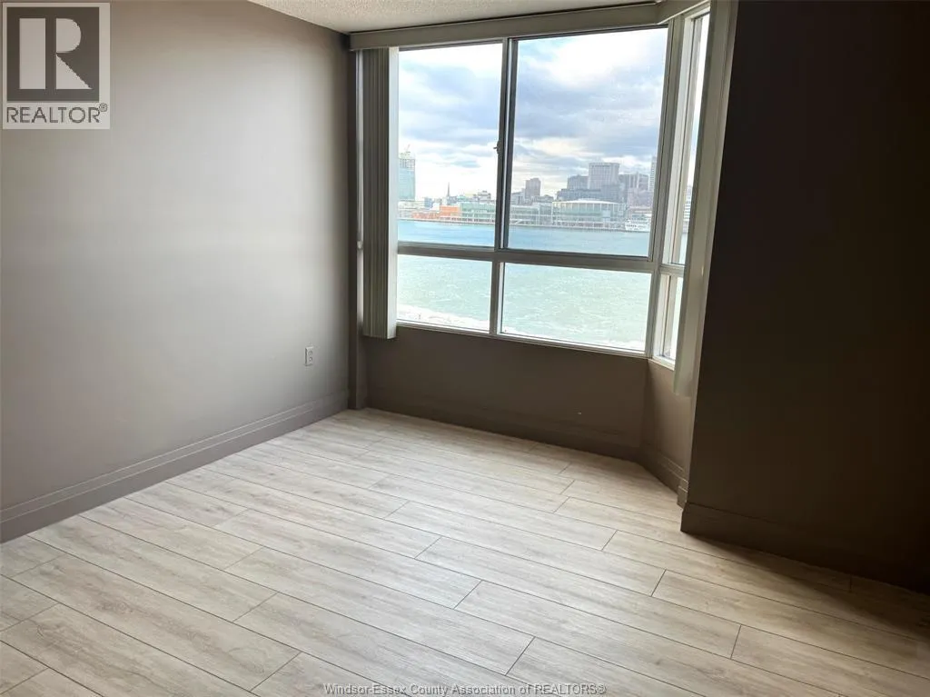 ONE BLOCK EAST OF OUELLETTE AVE Here is a fabulous opportunity to own a front unit at ""75 Riverside East"" with panoramic views of the Renaissance Centre and the Detroit River from every room! Featuring 1,335 square feet with an open concept living room and dining room, kitchen with fridge, stove, dishwasher and microwave and separate eating nook. The principal bedroom has a walk-in closet and 4 piece ensuite bath. Front facing second bedroom and adjoining 4 piece guest bathroom and in-suite laundry with washer and dryer. The flooring has been updated in February, 2026 with beautiful vinyl planks. These units seldom are for sale !! Immediate possession. This is a wonderful building with great staff, third floor terrace with trees, patio furniture and bar-b-que, fully equipped exercise centre and a main floor workshop! Plus an amazing roof top garden with 360 degree view of the city and waterfront. One underground parking space is included! (id:27476)