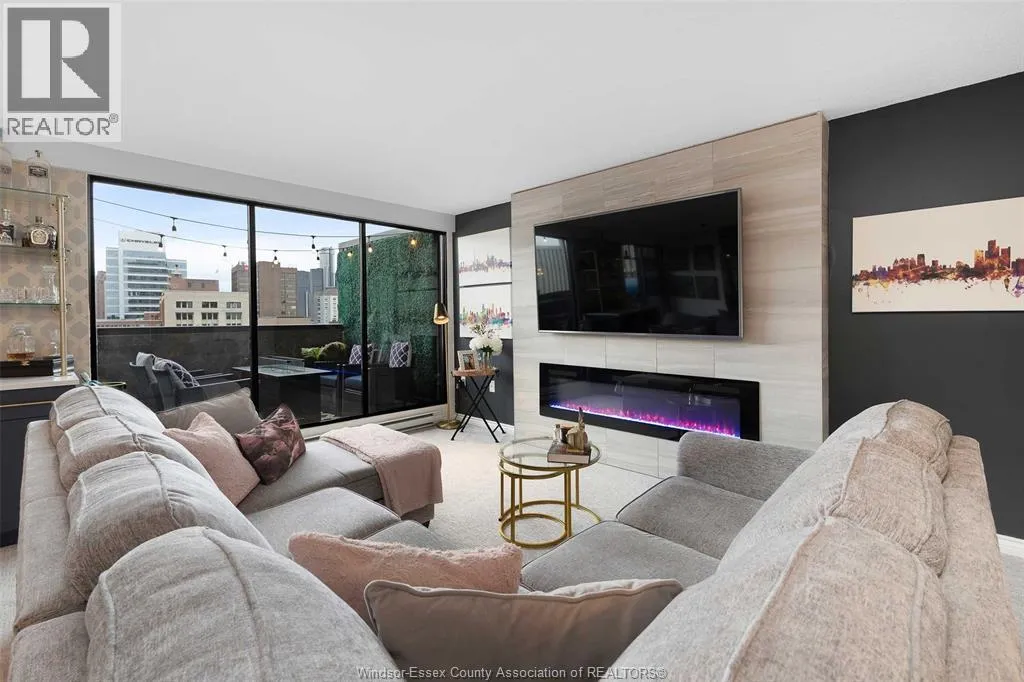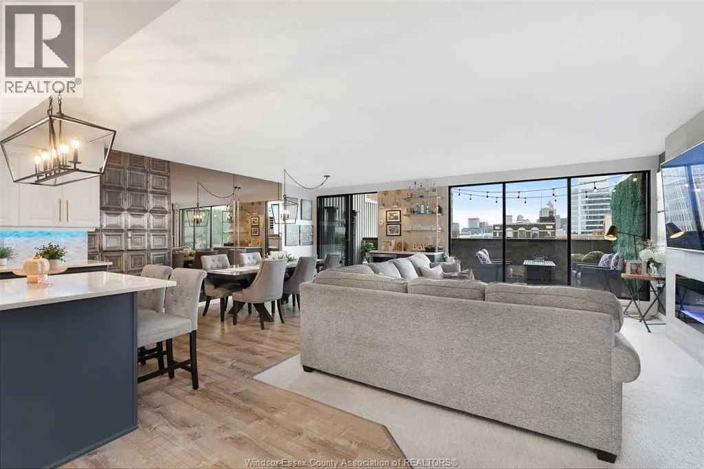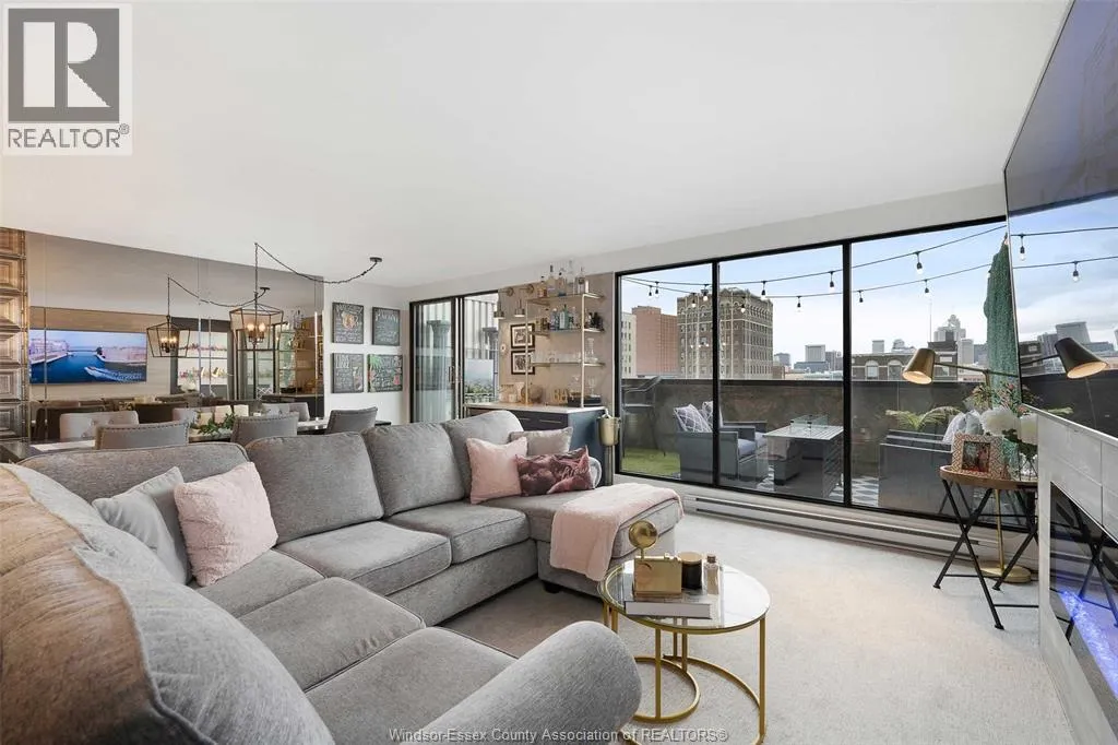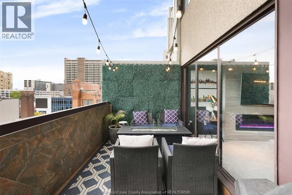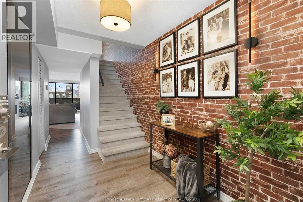 Gorgeous 2-storey downtown condo, approximately 1300sf at Royal Windsor Terrace. This 2 Bedroom, 2 full baths suite is sure to impress the moment you step in the door. You will love cooking and hosting in your chefâs kitchen with center sit up island, updated cabinets, abundant storage, newer stone countertops and appliances. Spacious and open concept main floor layout with elegant dining and living room. Entertain on your private terrace overlooking the city and its breathtaking views of the waterfront and Detroit skyline. 2nd floor offers a generous Primary retreat with euro shower and double vanity ensuite. Unrivalled amenities featuring an indoor pool with hot tub, gym, rooftop terrace & party room, billiards tables, sauna, racquet courts, and more! Private parking space and storage locker included. Each floor has separate entry to the unit. Fully updated and turnkey; every fixture and detail has been meticulously thought out. Downsize without feeling confined; Maintenance free living at its finest! Love where you live. (id:27476)