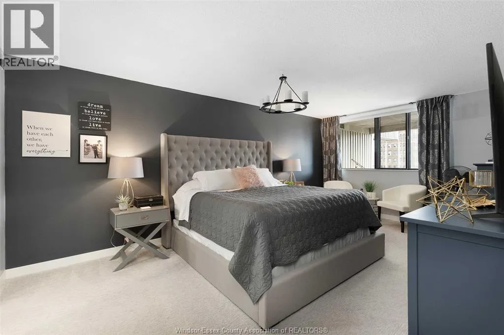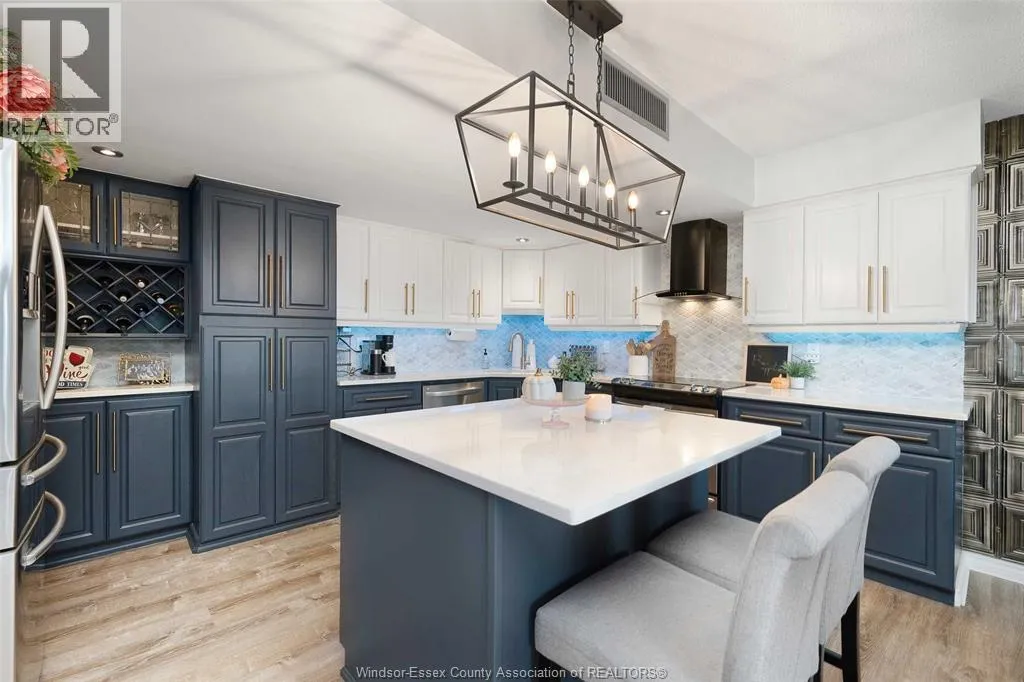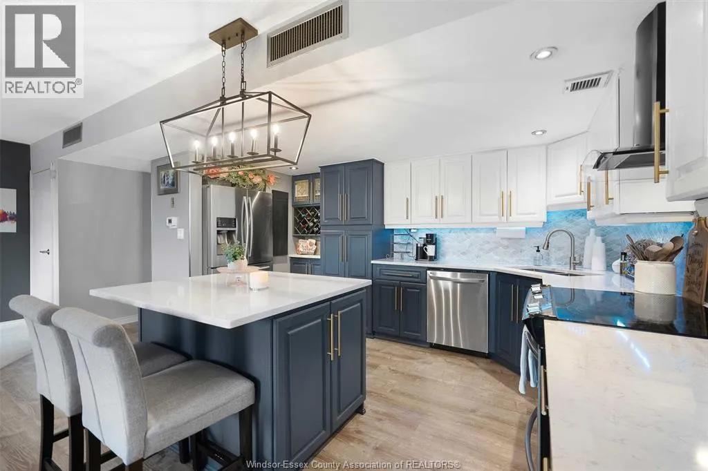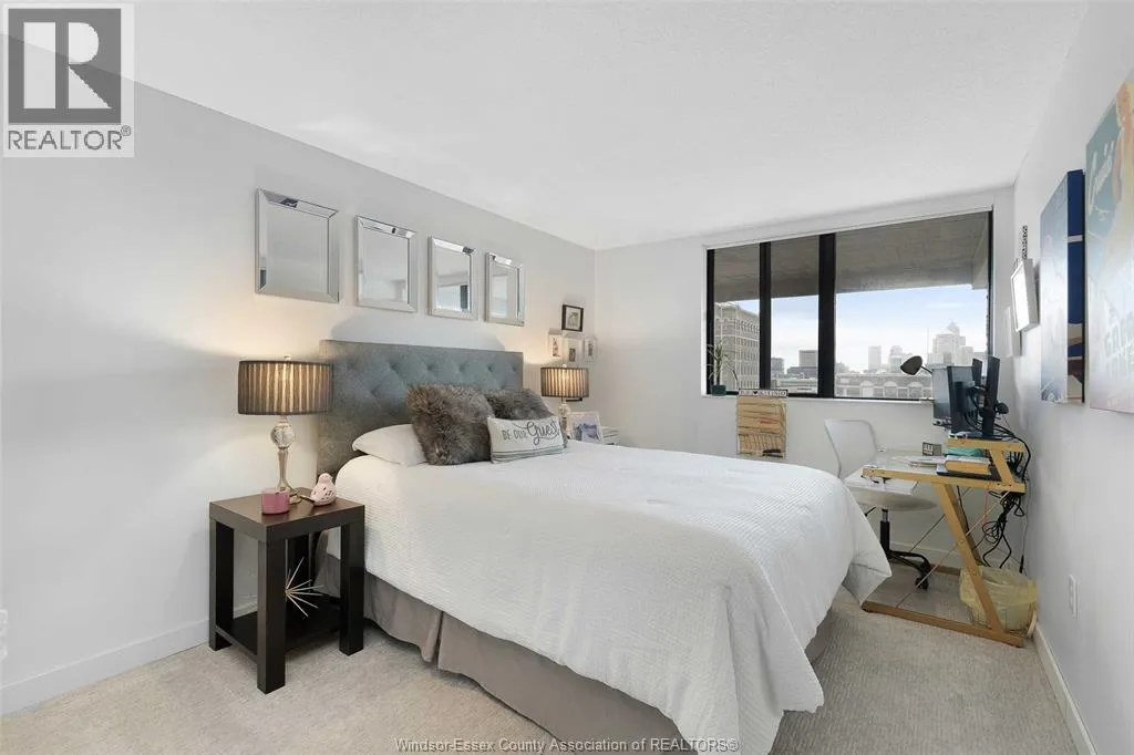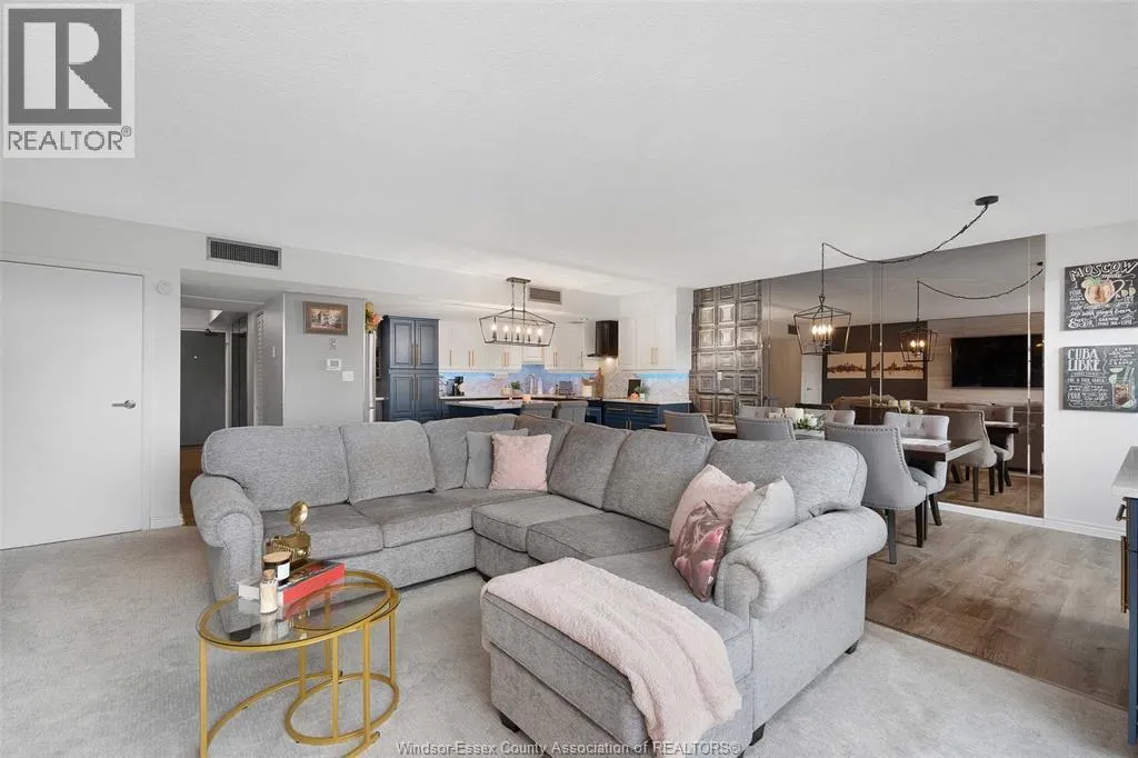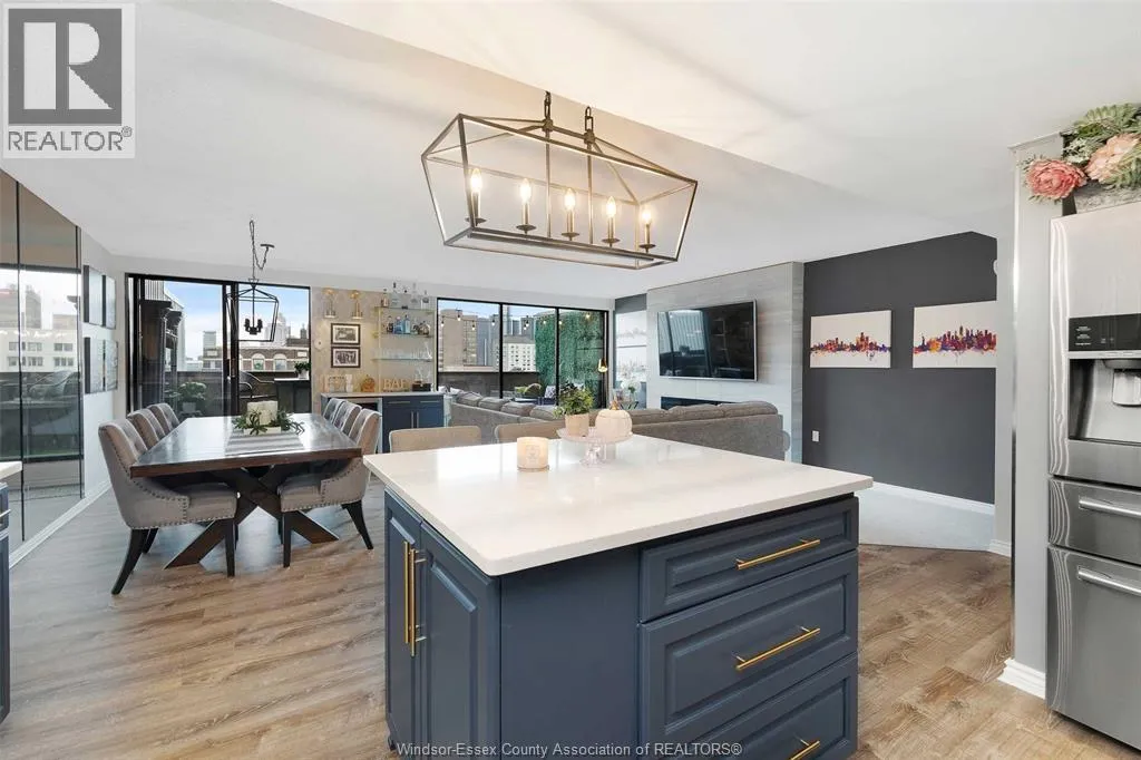 Gorgeous 2-storey downtown condo, approximately 1300sf at Royal Windsor Terrace. This 2 Bedroom, 2 full baths suite is sure to impress the moment you step in the door. You will love cooking and hosting in your chefâs kitchen with center sit up island, updated cabinets, abundant storage, newer stone countertops and appliances. Spacious and open concept main floor layout with elegant dining and living room. Entertain on your private terrace overlooking the city and its breathtaking views of the waterfront and Detroit skyline. 2nd floor offers a generous Primary retreat with euro shower and double vanity ensuite. Unrivalled amenities featuring an indoor pool with hot tub, gym, rooftop terrace & party room, billiards tables, sauna, racquet courts, and more! Private parking space and storage locker included. Each floor has separate entry to the unit. Fully updated and turnkey; every fixture and detail has been meticulously thought out. Downsize without feeling confined; Maintenance free living at its finest! Love where you live. (id:27476)